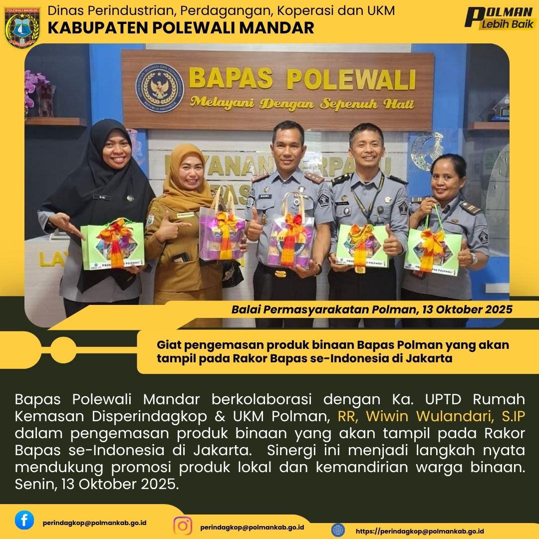 Bapas Polewali Mandar berkolaborasi dengan Ka. UPTD Rumah Kemasan Disperindagkop & UKM Polman, RR, Wiwin Wulandari, S.IP dalam pengemasan produk binaan yang akan tampil pada Rakor Bapas se-Indones...