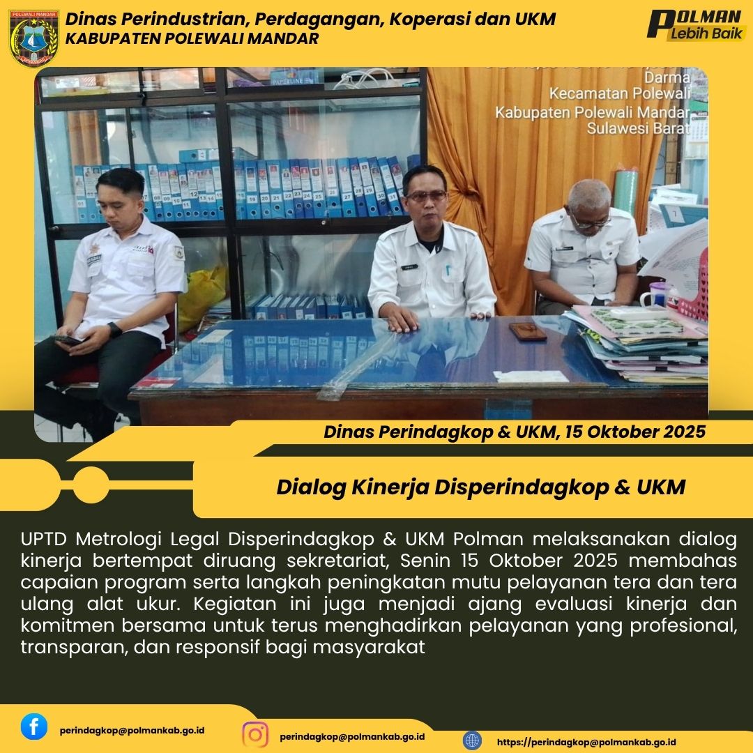 UPTD Metrologi Legal Disperindagkop & UKM Polman melaksanakan dialog kinerja bertempat diruang sekretariat, Senin 15 Oktober 2025 membahas capaian program serta langkah peningkatan mutu pelayanan ...