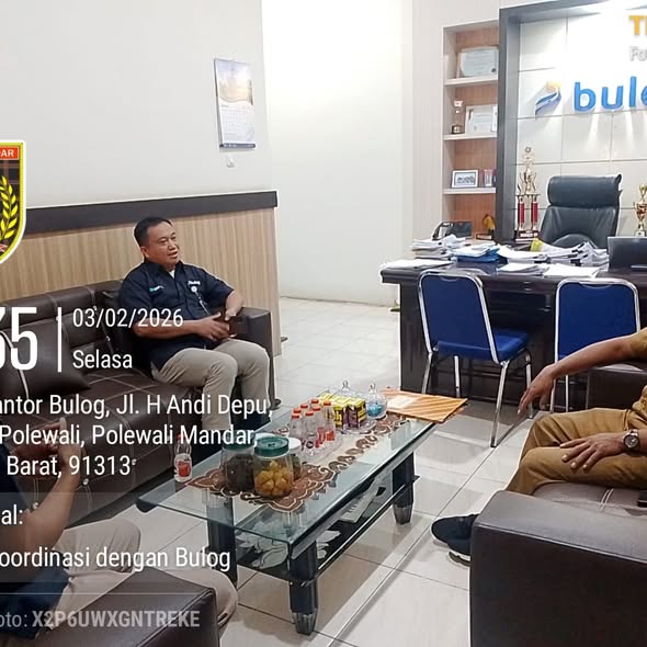 Kabid Perdagangan Disperindagkop & UKM Polewali Mandar, Fatriasmal, S.E, melakukan koordinasi dengan pihak Bulog mengenai kelanjutan sewa gudang Sistem Resi Gudang (SRG) di Kantor Bulog Polman, Se...
