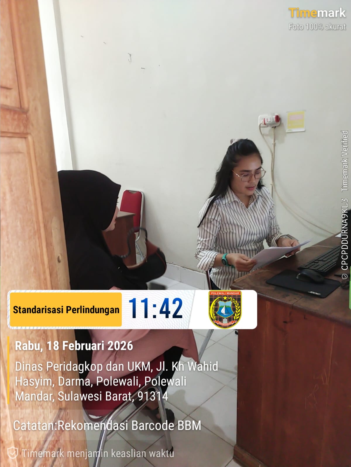 Rabu 18 Februari 2026, Kepala Bidang Standarisasi Pelayanan Konsumen (SPK), M.Ayyub.S.Amin,S.Kom.,M.M bersama Staf di ruang kerja SPK, Mendampingi Pelayanan Permohonan Pembuatan Barcode BBM Jenis Pertalite pada Aplikasi X-Star Pertamina untuk pelaku Usaha industri Rumahan Pembuatan Tempe....