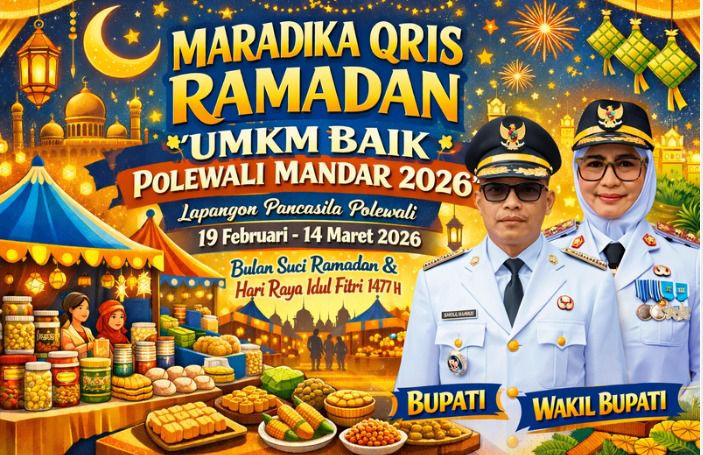 Bupati dan Wakil Bupati Polewali Mandar Gelar Maradika QRIS Ramadan UMKM Baik 2026H. Samsul Mahmud bersama Hj. A. Nursami Masdar secara resmi menggelar Maradika QRIS Ramadan UMKM Baik Polewali Mandar yang berlangsung di Lapangan Pancasila Polewali mulai 19 Februari hingga 14 Maret 2026. Kegiatan ini diselenggarakan dalam rangka menyambut bulan suci Ramadan dan Hari Raya Idul Fitri 1447 Hijriah.Event tahunan ini menjadi wadah promosi dan penguatan ekonomi kerakyatan melalui pemberdayaan pelaku UM...