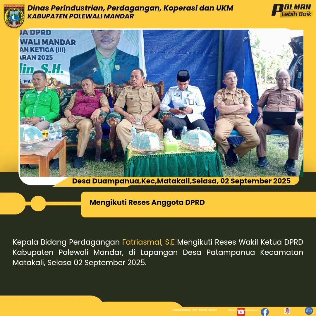 Kepala Bibang Perdagangan Fatriasmal,SE, Mengikuti Reses Wakil Ketua DPRD Kabupaten Polewali Mandar, di Lapangan Desa Patampanua, Kecamatan Matakali, Selasa 02 September 2025...