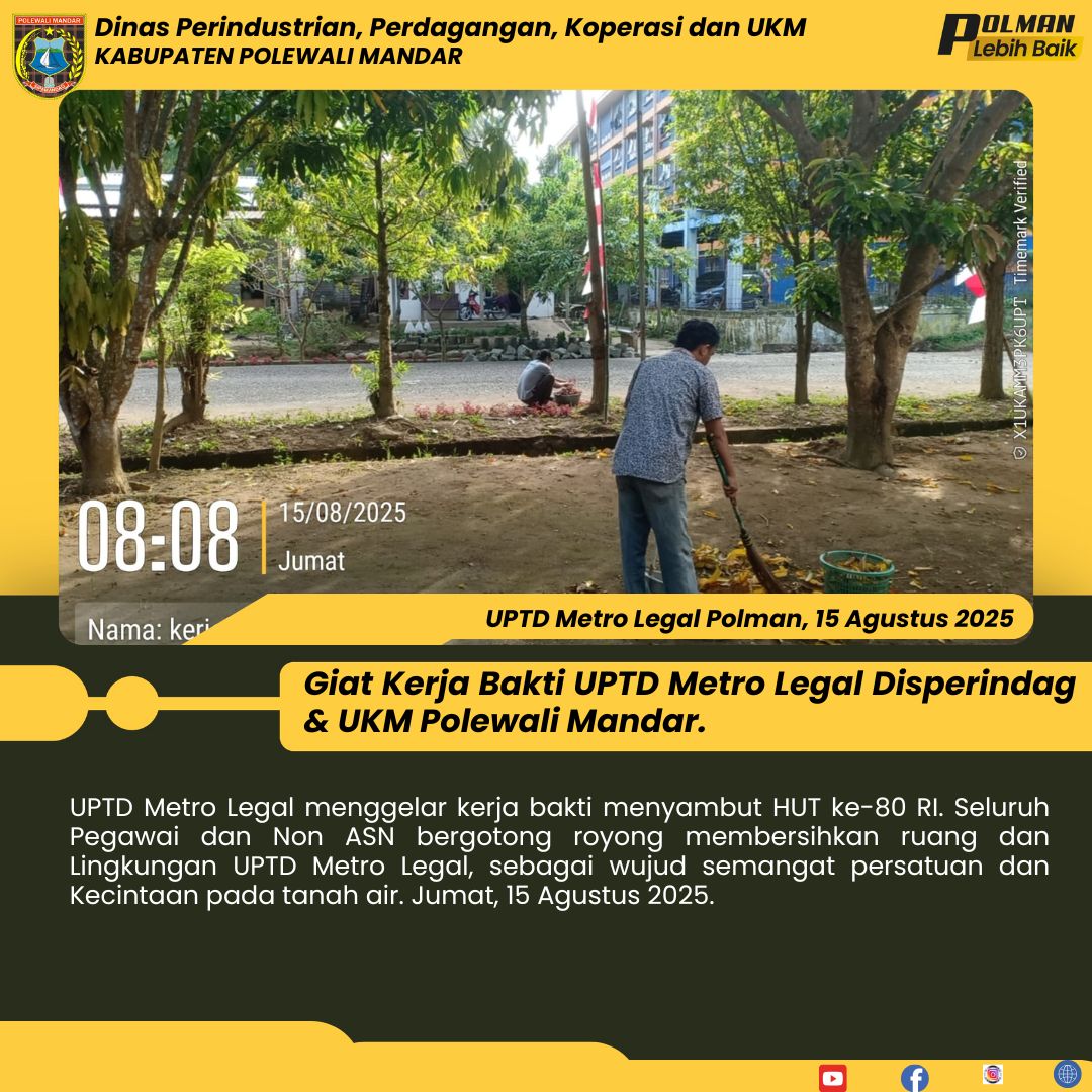 Giat Kerja Bakti UPTD Metro Legal Disperindag & UKM Polewali Mandar. Jumat 15 Agustus 2025...