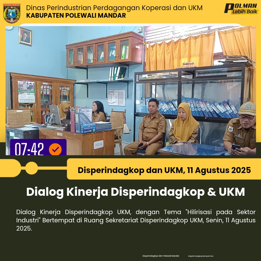Dialog Kinerja Disperindagkop UKM, dengan Tema "Hilirisasi pada Sektor Industri" Bertempat di Ruang Sekretariat Disperindagkop UKM, Senin, 11 Agustus 2025....