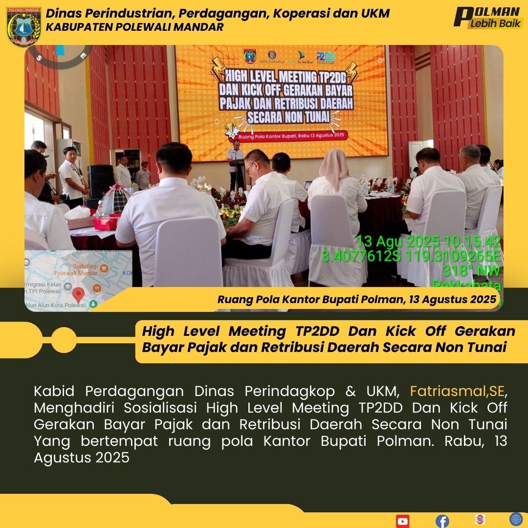 Kabid Perdagangan Dinas Perindagkop & UKM, Fatriasmal,SE, Menghadiri Sosialisasi High Level Meeting TP2DD Dan Kick Off Gerakan Bayar Pajak dan Retribusi Daerah Secara Non Tunai Yang bertempat ruang pola Kantor Bupati Polman. Rabu, 13 Agustus 2025...