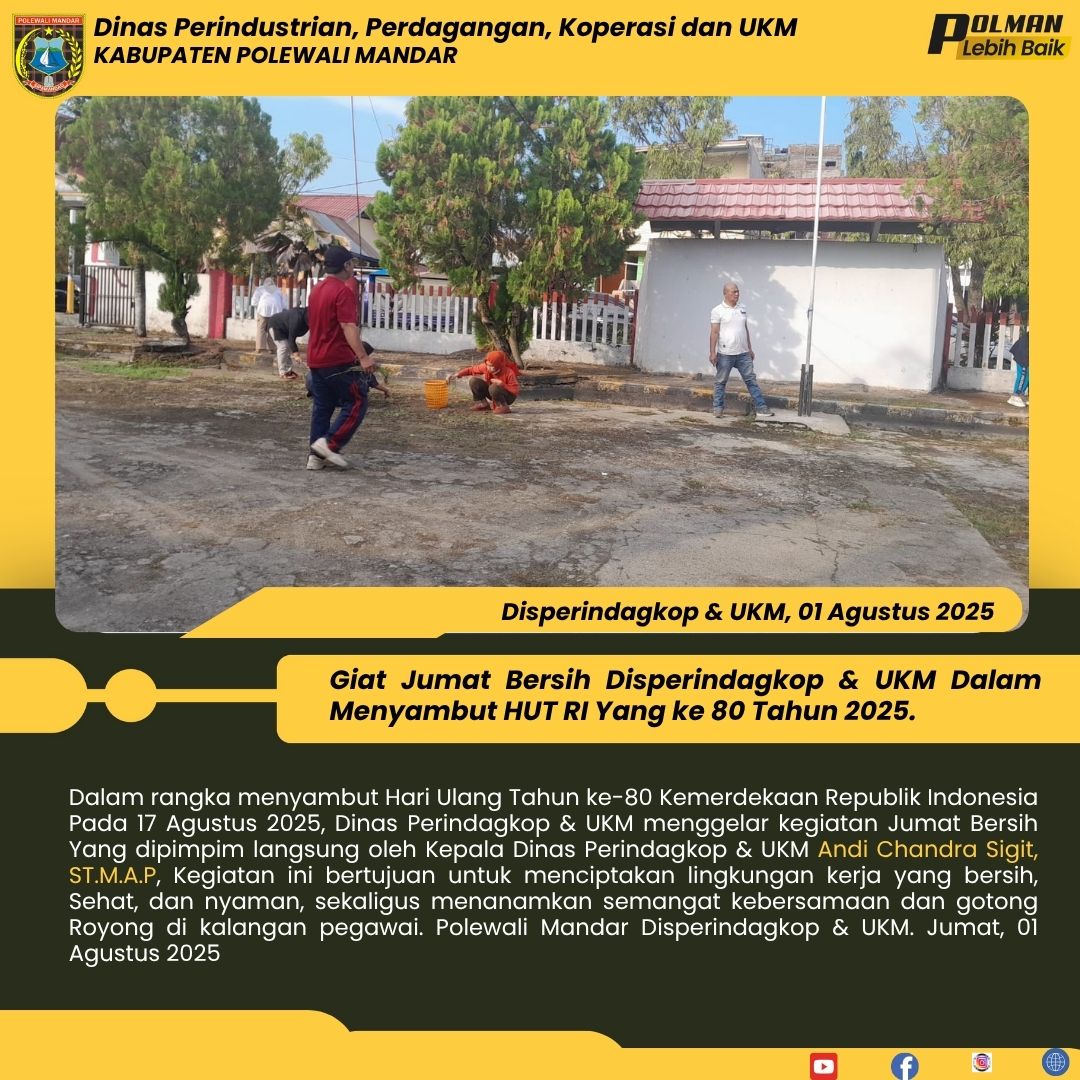 Giat Jumat Bersih Disperindagkop & UKM Dalam Menyambut HUT RI Yang ke 80 Tahun 2025. Jumat 01 Agustus 2025...