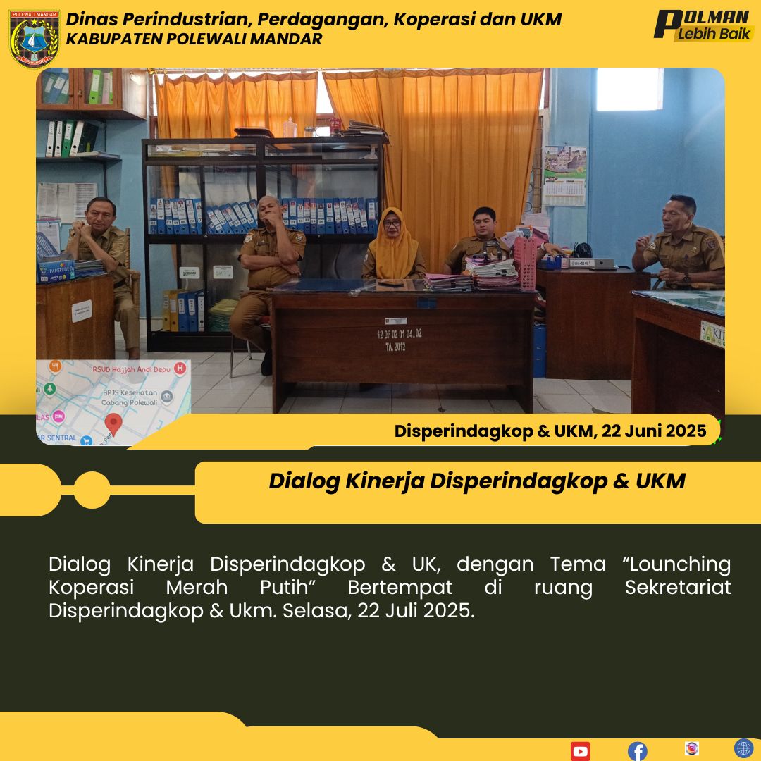 Dialog Kinerja Disperindagkop & UK, dengan Tema “Lounching Koperasi Merah Putih” Bertempat di ruang Sekretariat Disperindagkop & Ukm. Selasa, 22 Juli 2025....