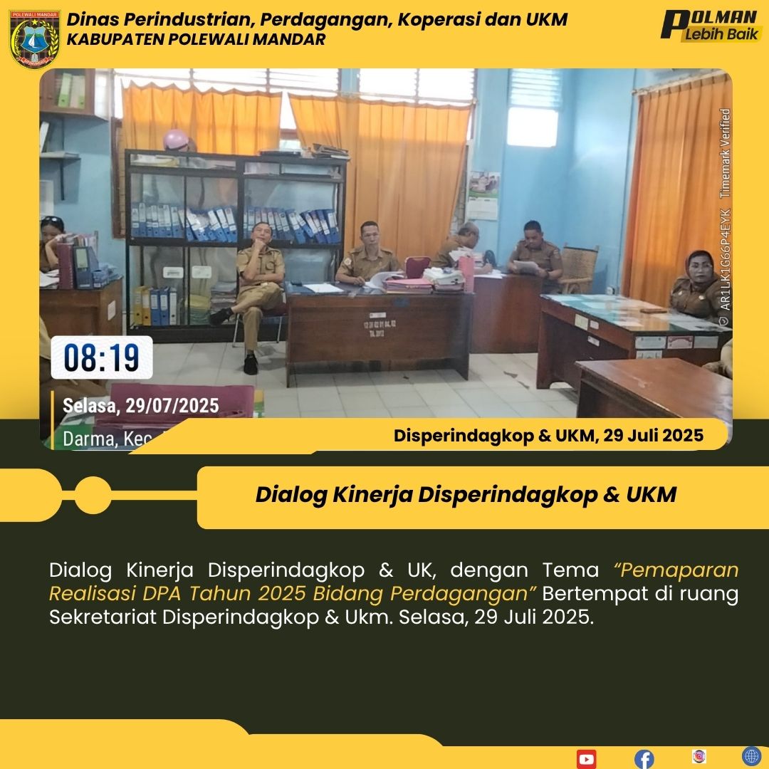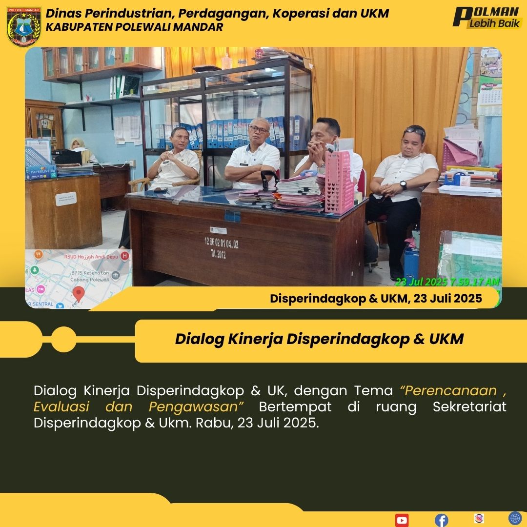 Dialog Kinerja Disperindagkop & UK, dengan Tema “Perencanaan , Evaluasi dan Pengawasan” Bertempat di ruang Sekretariat Disperindagkop & Ukm. Rabu, 23 Juli 2025....