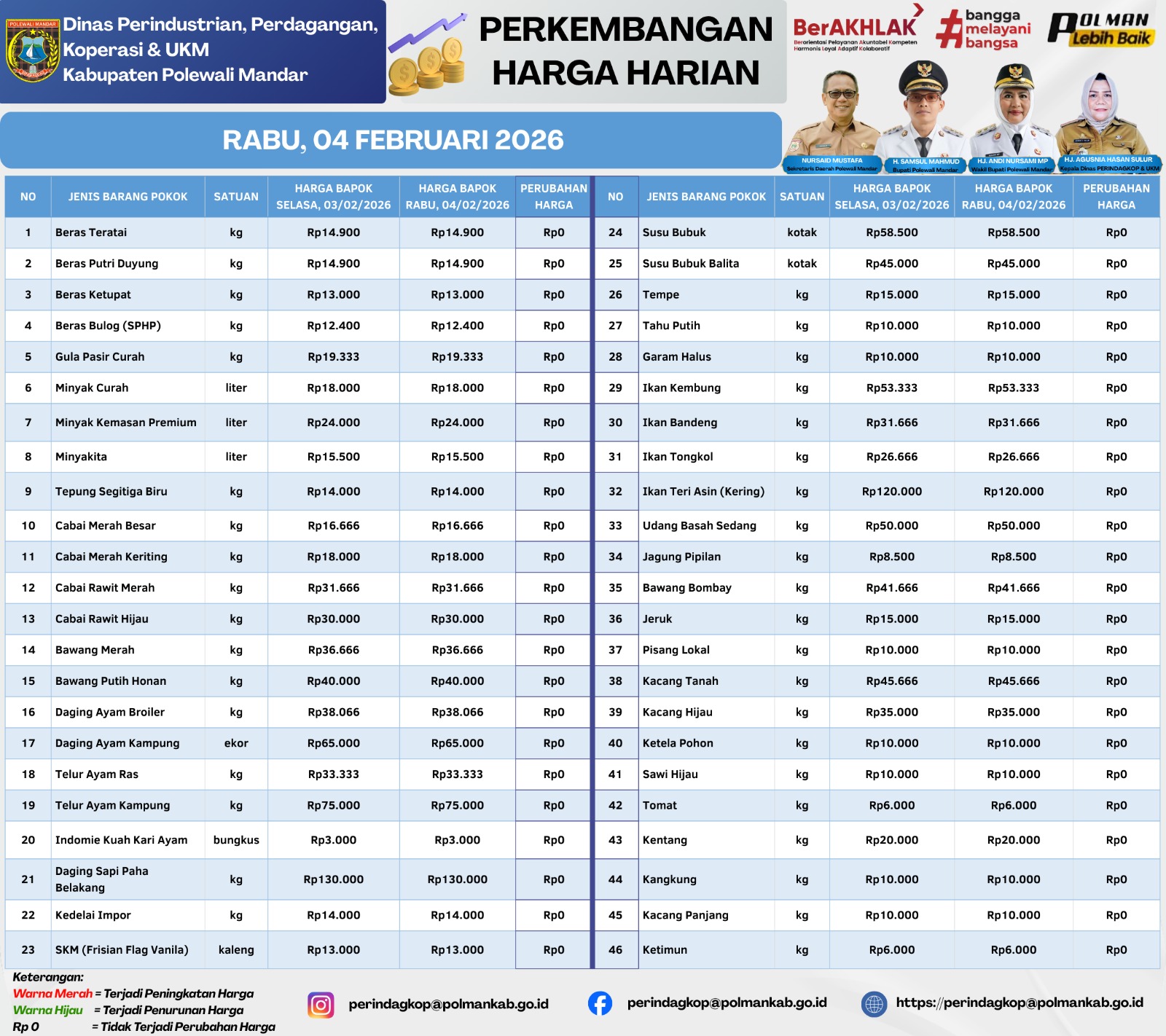 Analis Harga bahan Pokok Rabu, 04 Feb 2026...