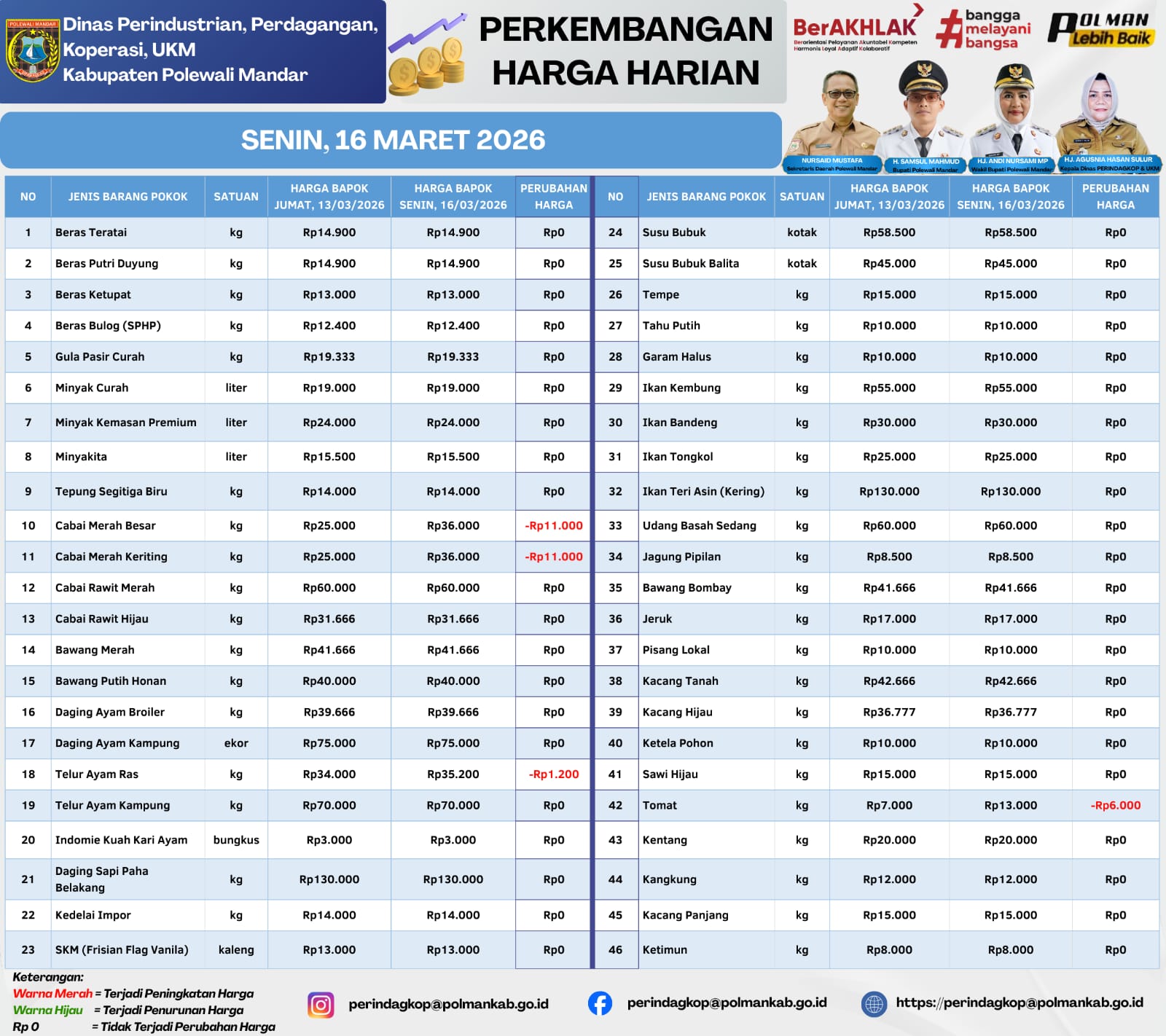 Analisis Harga Bahan Pokok – Polewali Mandar, Senin 16 Maret 2026...