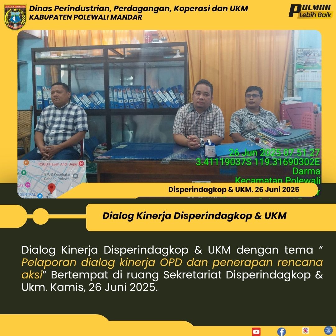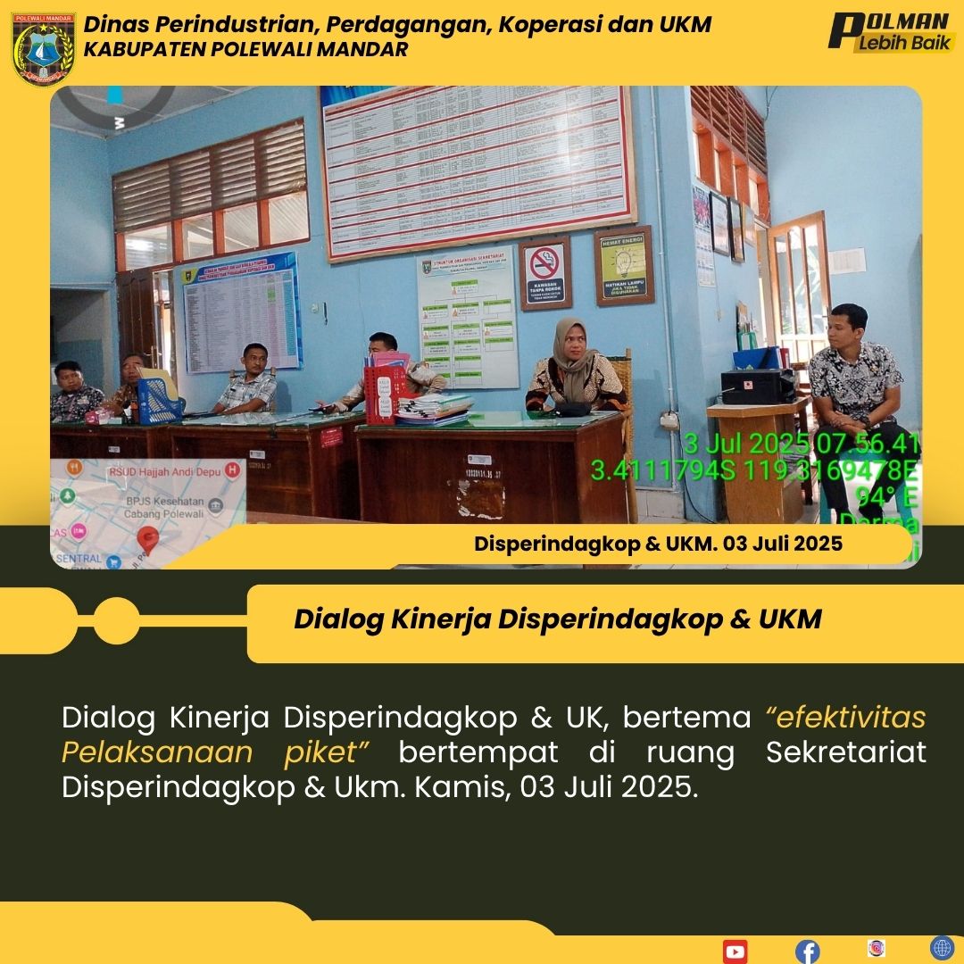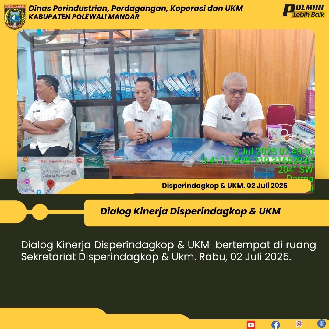 Dialog Kinerja Disperindagkop & UKM bertempat di ruang Sekretariat Disperindagkop & Ukm. Rabu, 02 Juli 2025....