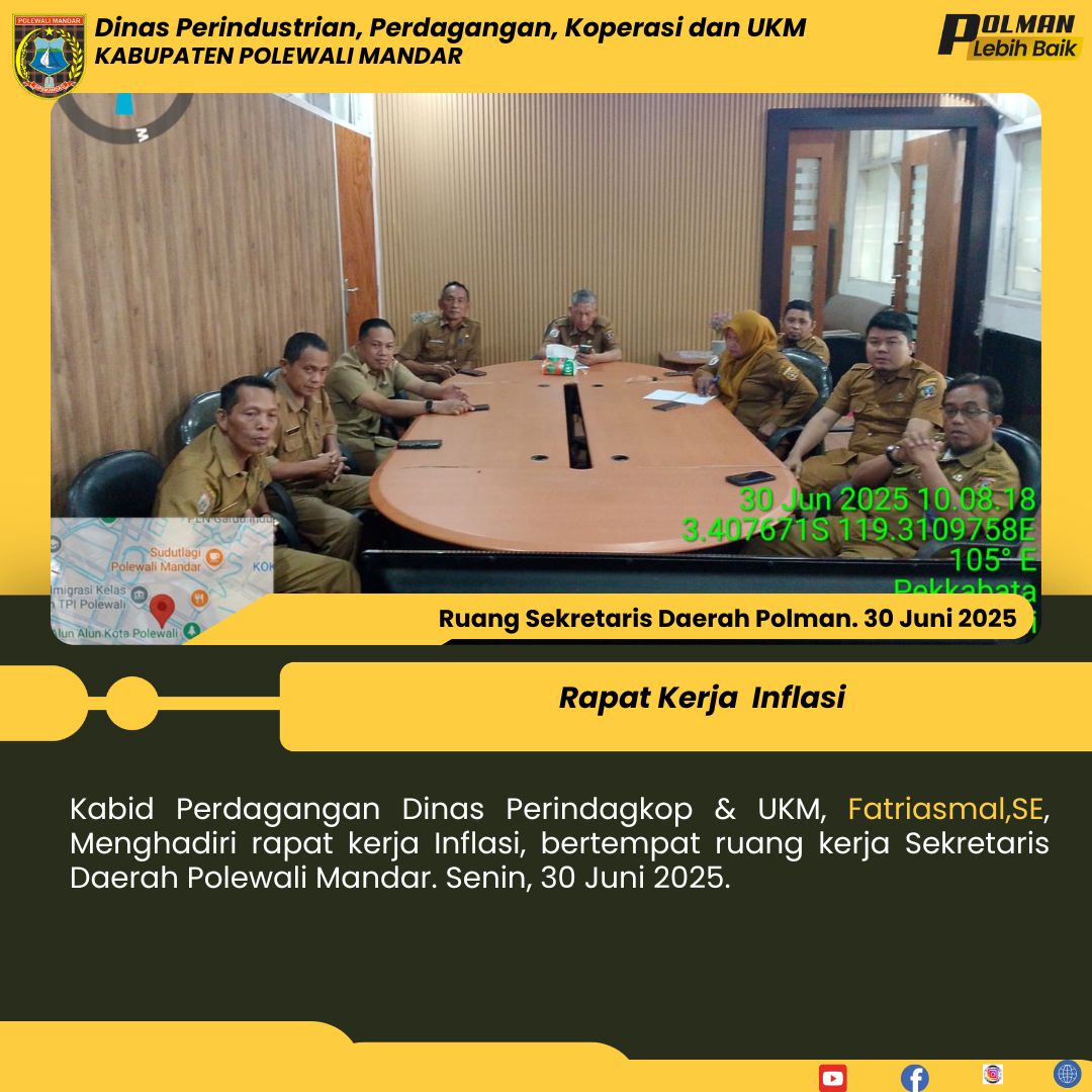 Kabid Perdagangan Dinas Perindagkop & UKM, Fatriasmal,SE, Menghadiri rapat kerja Inflasi, bertempat ruang kerja Sekretaris Daerah Polewali Mandar. Senin, 30 Juni 2025....