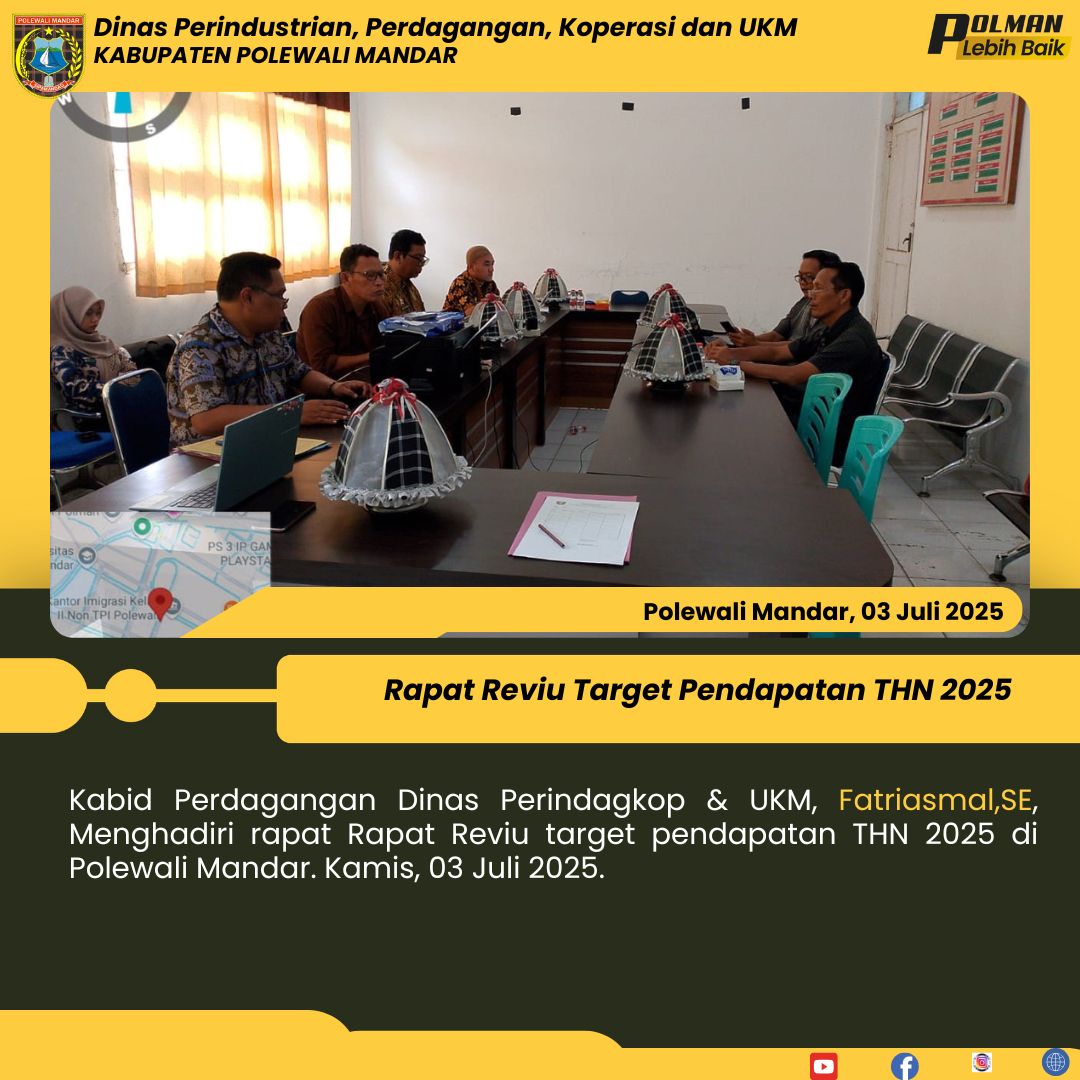 Kabid Perdagangan Dinas Perindagkop & UKM, Fatriasmal,SE, Menghadiri Rapat Reviu target pendapatan THN 2025 di Polewali Mandar. Kamis, 03 Juli 2025....