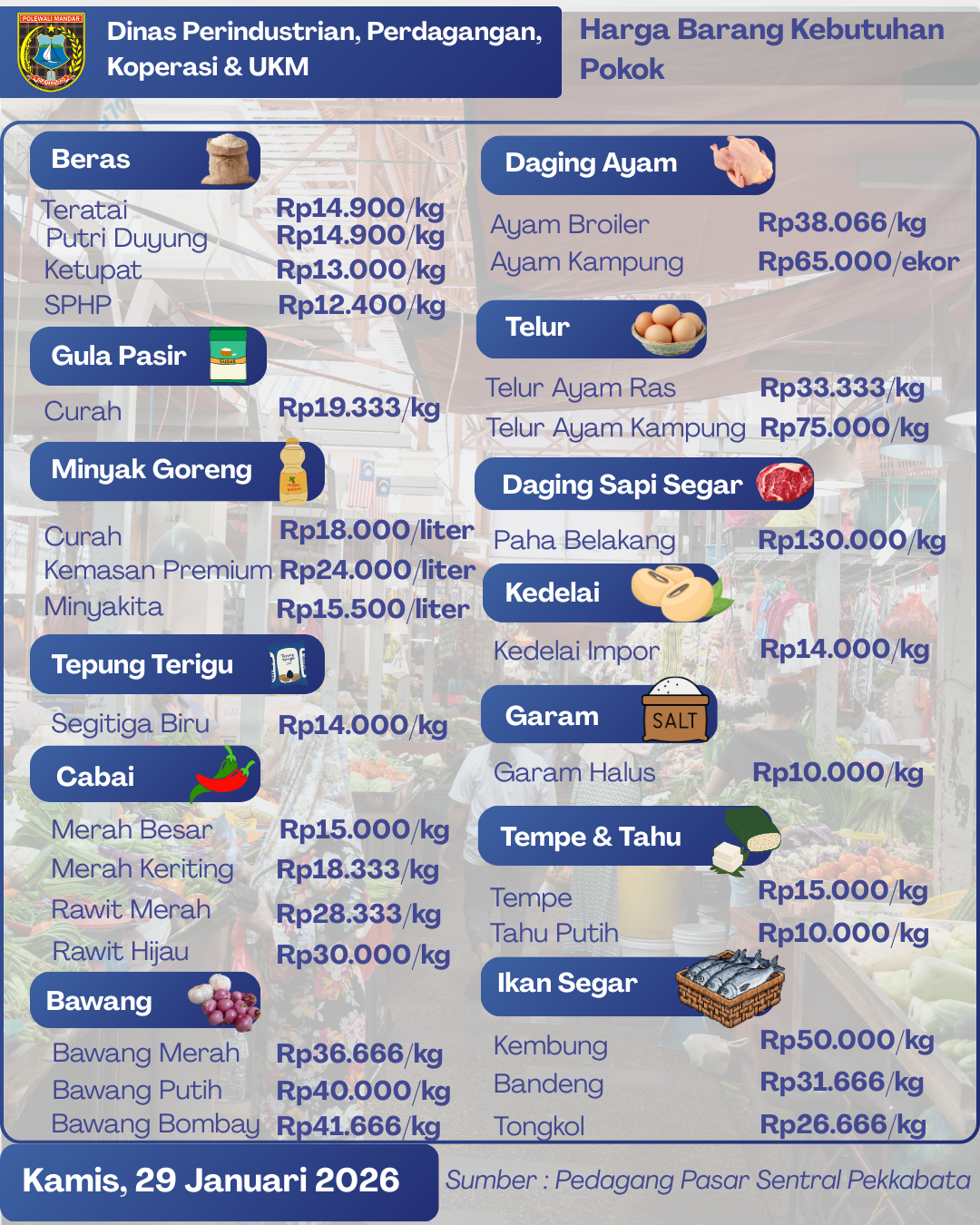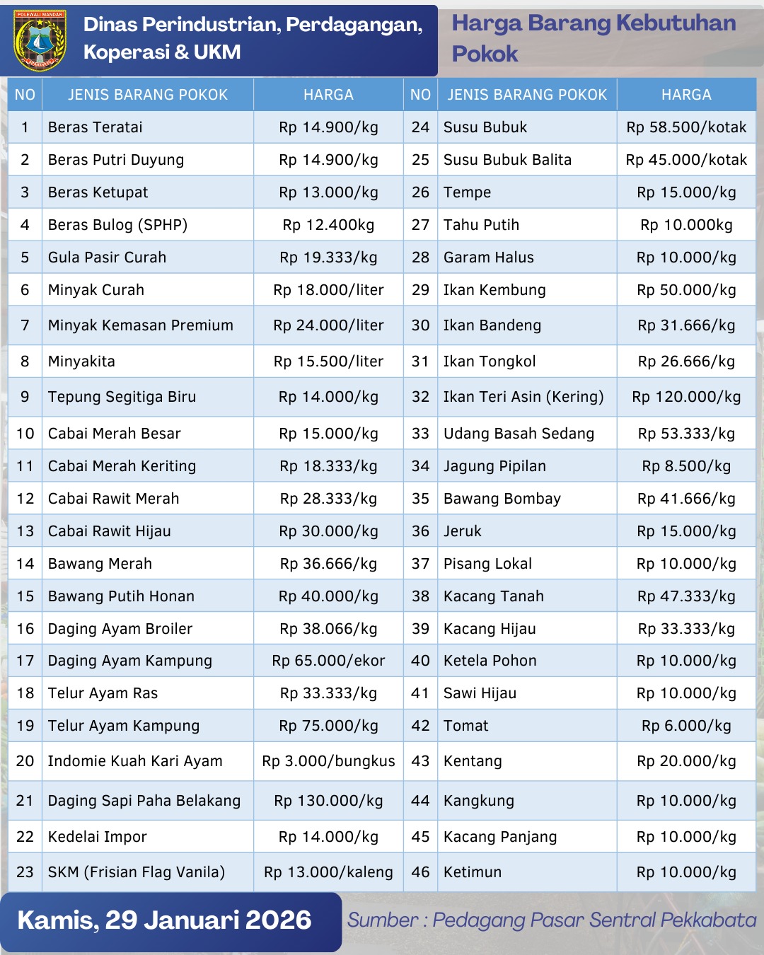 Tabel Bahan Pokok Kamis, 29 Jan 2026...