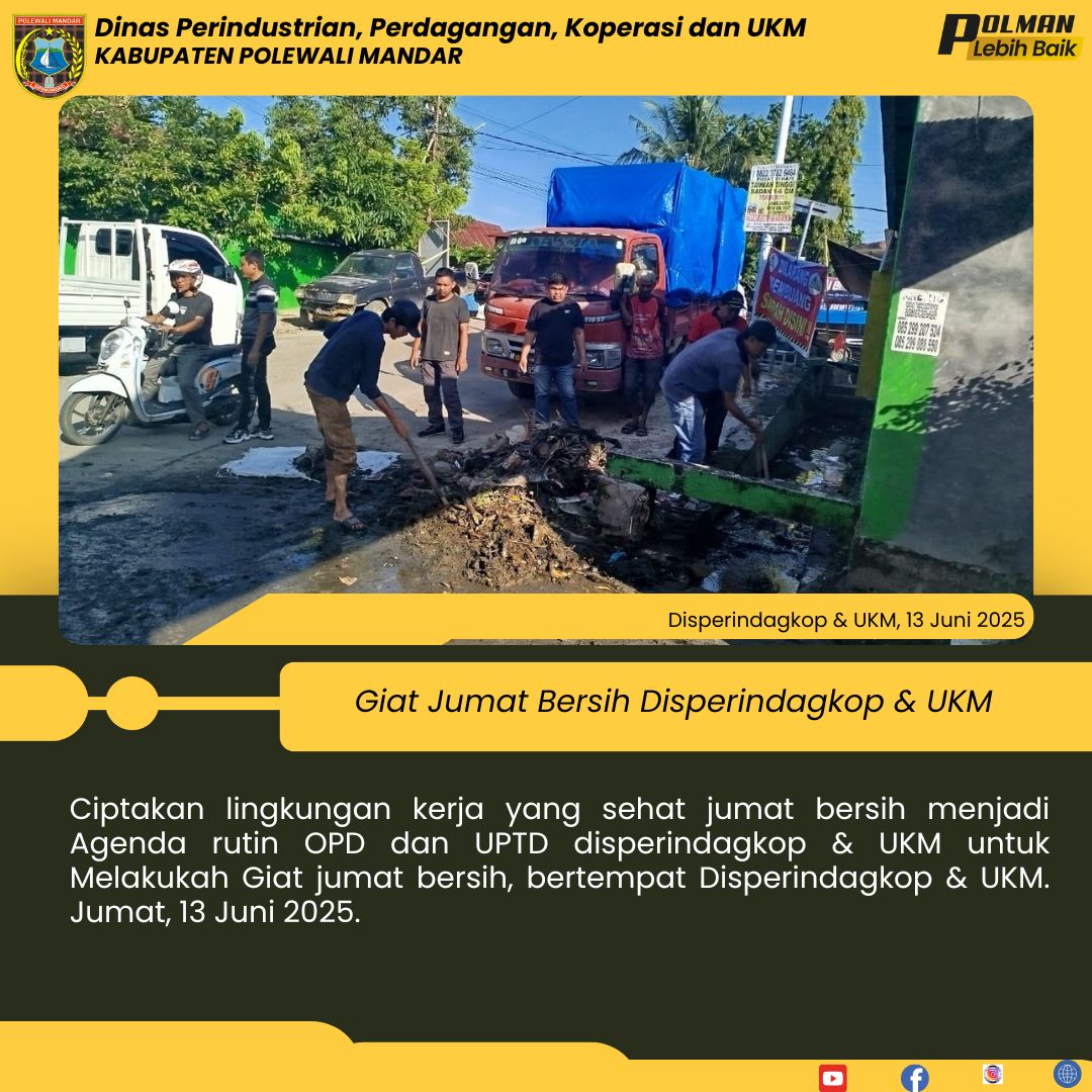 Ciptakan lingkungan kerja yang sehat jumat bersih menjadi Agenda rutin OPD dan UPTD disperindagkop & UKM untuk Melakukah Giat jumat bersih, bertempat Disperindagkop & UKM. Jumat, 13 Juni 2025....
