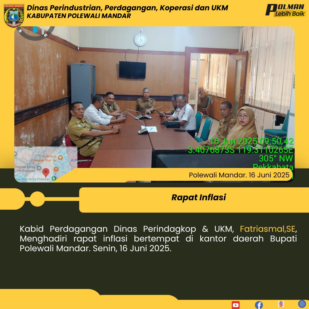 Kabid Perdagangan Dinas Perindagkop & UKM, Fatriasmal,SE, Menghadiri rapat inflasi bertempat di kantor daerah Bupati Polewali Mandar. Senin, 16 Juni 2025....