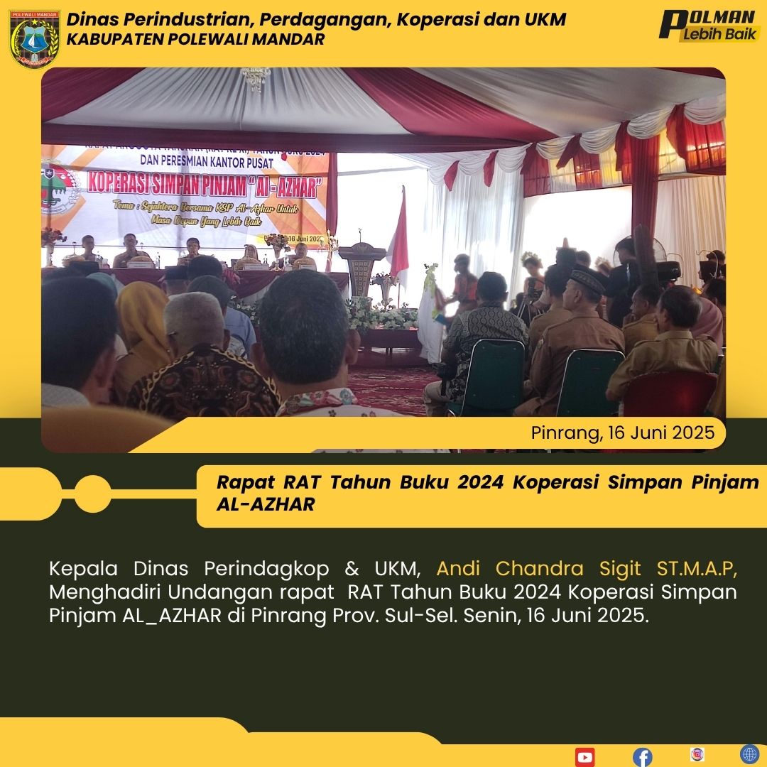 Kepala Dinas Perindagkop & UKM, Andi Chandra Sigit ST.M.A.P, Menghadiri Undangan rapat RAT Tahun Buku 2024 Koperasi Simpan Pinjam AL_AZHAR di Pinrang Prov. Sul-Sel. Senin, 16 Juni 2025....