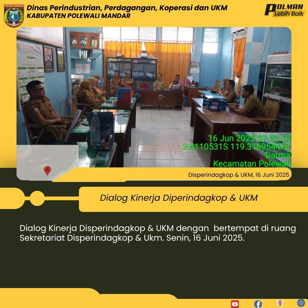Dialog Kinerja Disperindagkop & UKM dengan bertempat di ruang Sekretariat Disperindagkop & Ukm. Senin, 16 Juni 2025....