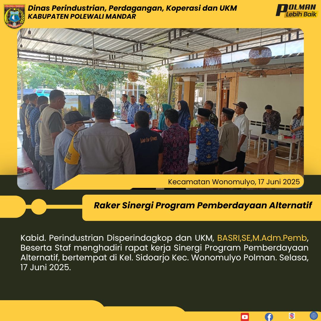 Kabid. Perindustrian Disperindagkop dan UKM, BASRI,SE,M.Adm.Pemb, Beserta Staf menghadiri rapat kerja Sinergi Program Pemberdayaan Alternatif, bertempat di Kel. Sidoarjo Kec. Wonomulyo Polman. Selasa, 17 Juni 2025....