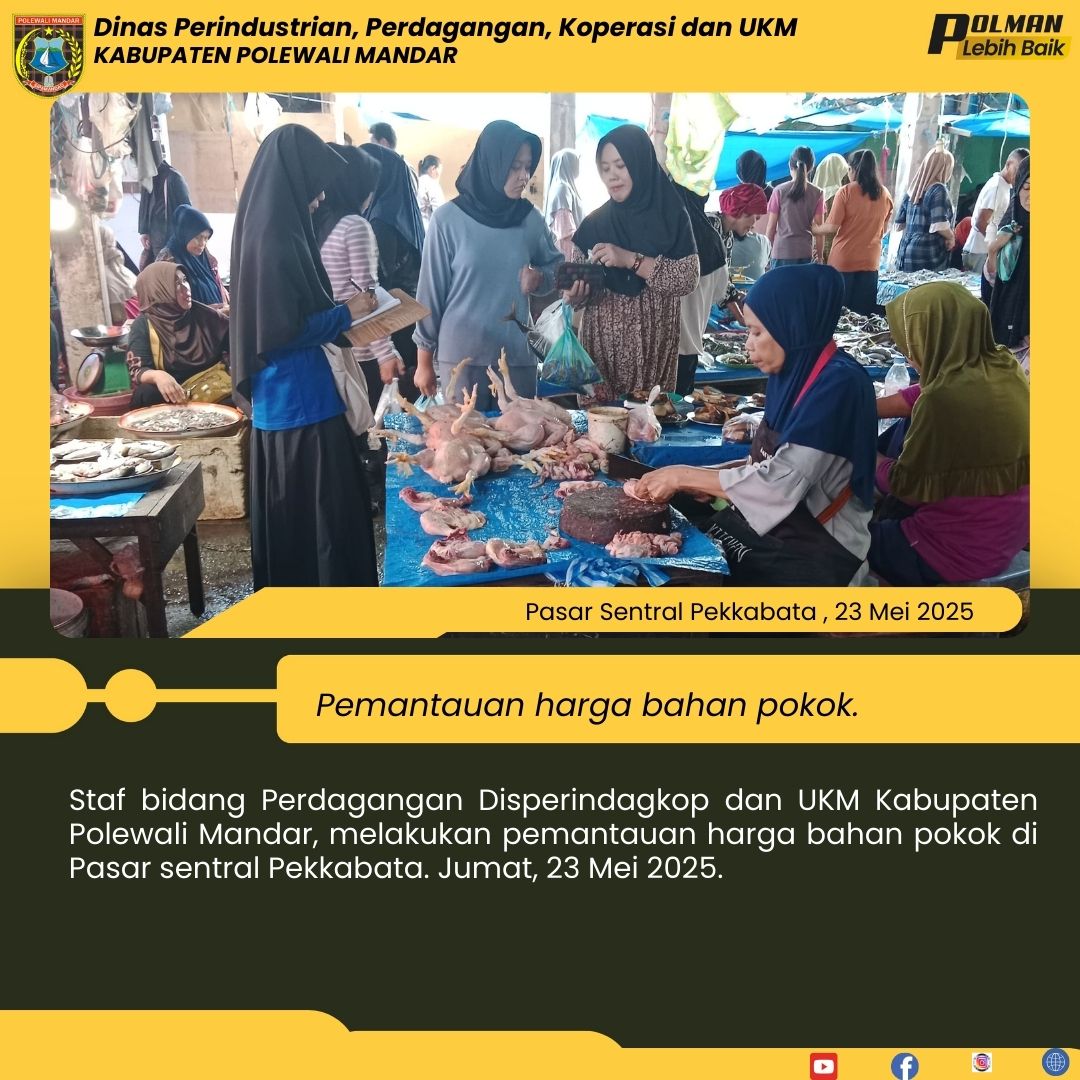 Staf bidang Perdagangan Disperindagkop dan UKM Kabupaten Polewali Mandar, melakukan pemantauan harga bahan pokok di Pasar sentral Pekkabata. Jumat, 23 Mei 2025....