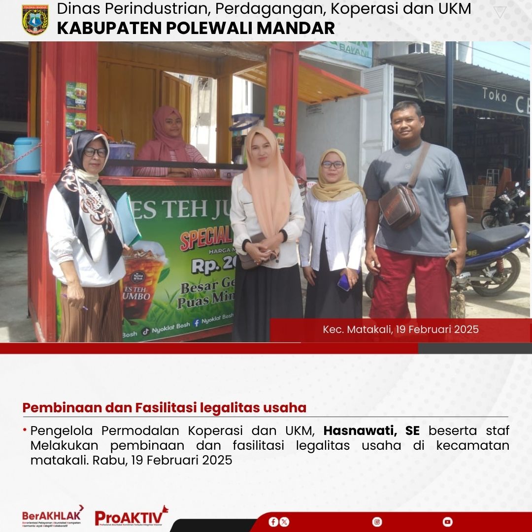 Bidang Koperasi dan Usaha Kecil Menengah, melakukan kunjungan ke pelaku usaha dengan tujuan menfasilitasi legalitas usaha para pelaku UKM yang berada di Kecamatan Polewali pada hari jumat, 14 Februari 2025....