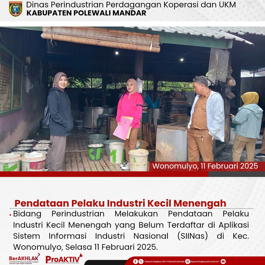 Bidang Perindustrian melakukan pendataan pelaku Industri Kecil Menengah yang belum terdaftar Sistem Informasi Industri Nasional (SIINas) di Kecamatan Wonomulyo pada hari selasa, 11 Februari 2025...