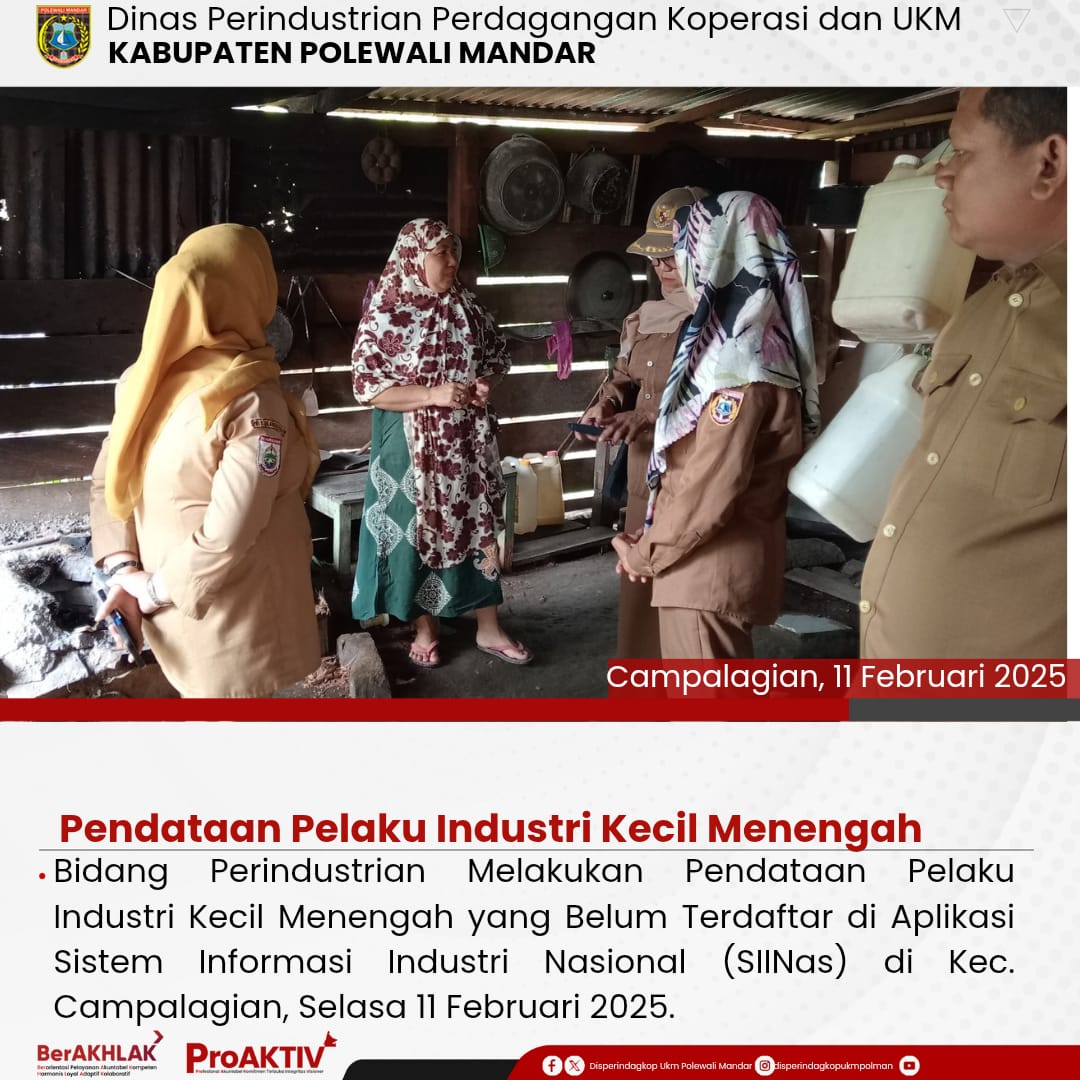 Bidang Perindustrian melakukan pendataan pelaku Industri Kecil Menengah yang belum terdaftar Sistem Informasi Industri Nasional (SIINas) di Kecamatan Campalagian pada hari selasa, 11 Februari 2025...