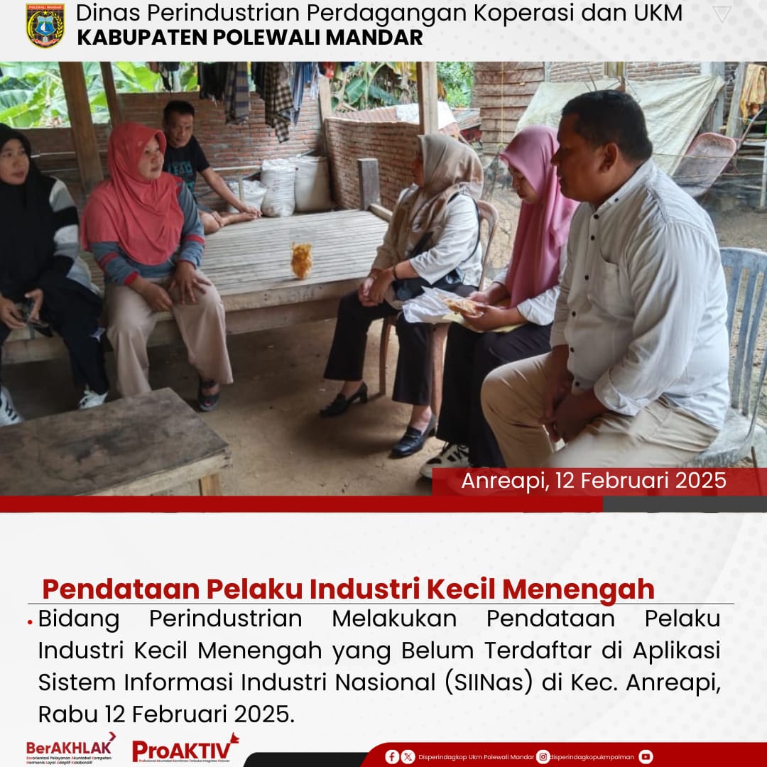 Bidang Perindustrian melakukan pendataan pelaku Industri Kecil Menengah yang belum terdaftar Sistem Informasi Industri Nasional (SIINas) di Kecamatan Anreapi pada hari rabu, 12 Februari 2025...