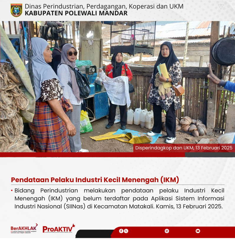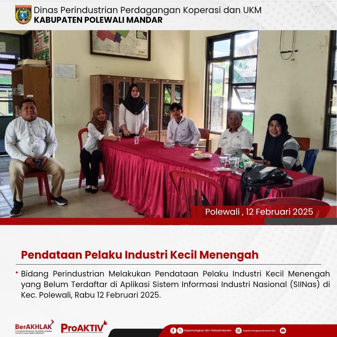 Bidang Perindustrian melakukan pendataan pelaku Industri Kecil Menengah yang belum terdaftar Sistem Informasi Industri Nasional (SIINas) di Kecamatan Polewali pada hari rabu, 12 Februari 2025...