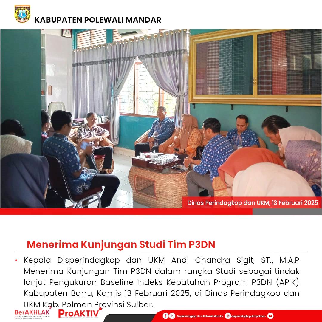 Kepala Dinas Perindustrian, Perdagangan, Koperasi dan UKM, ANDI CHANDRA SIGIT, ST., M.A.P, menerima kunjungan Tim P3DN dalam rangka studi sebagai tindak lanjut pengukuran Baseline Indeks Kepatuhan Program P3DN (APIK) Kabupaten Barru, Kamis 13 Februari 2025...
