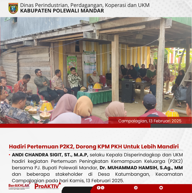 ANDI CHANDRA SIGIT, ST., M.A.P, selaku Kepala Dinas Perindustrian, Perdagangan, Koperasi dan UKM hadiri kegiatan Pertemuan Peningkatan Kemampuan Keluarga (P2K2) bersama PJ. Bupati, Dr. MUHAMMAD HAMSIH, S.Ag., MM dan beberapa stakeholder di Desa Katumbangan, Kecamatan Campalagian pada hari Kamis, 13 Februari 2025....