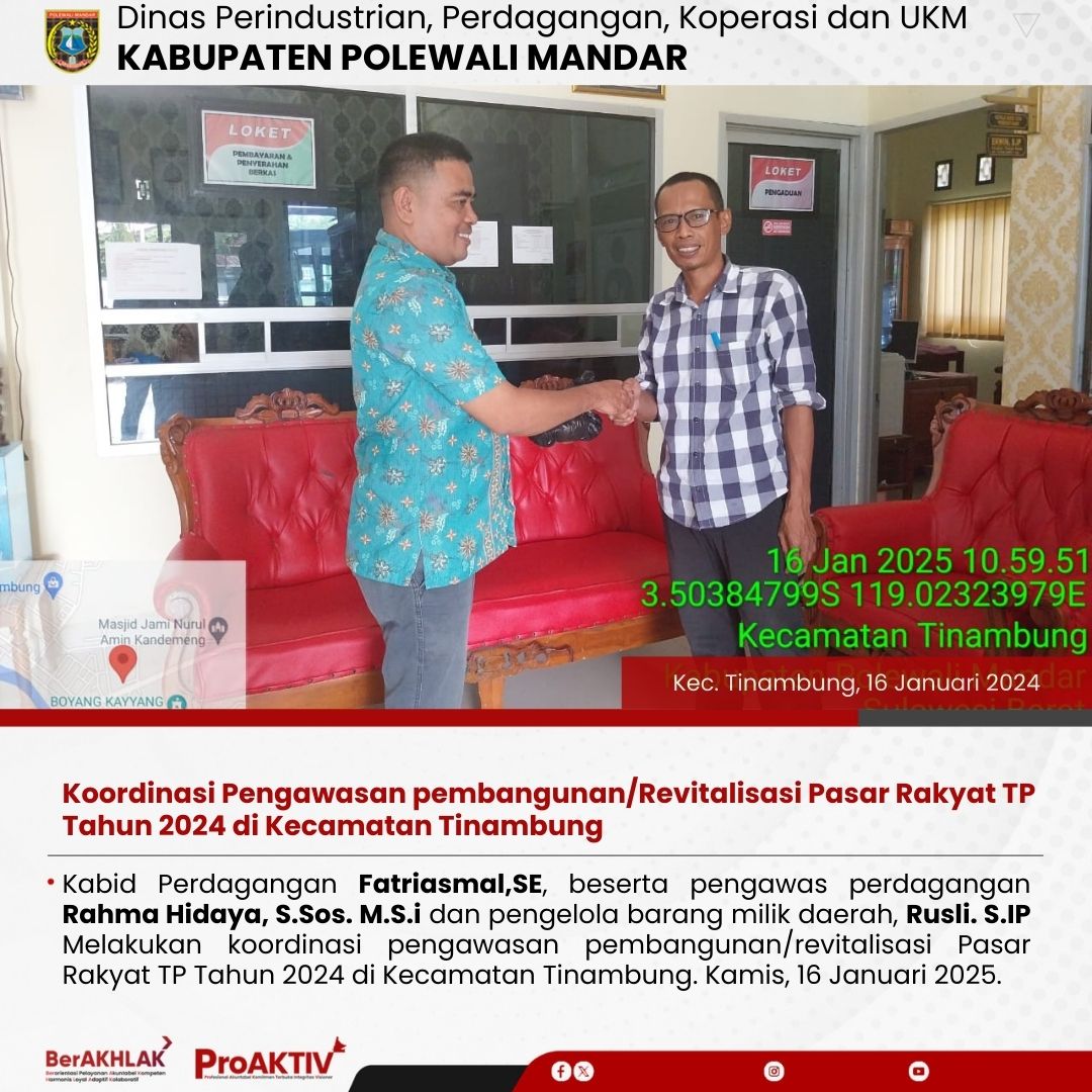 Koordinasi Pengawasan pembangunan/Revitalisasi Pasar Rakyat TP Tahun 2024 di Kecamatan Tinambung Kamis, 16 Jan 2025...