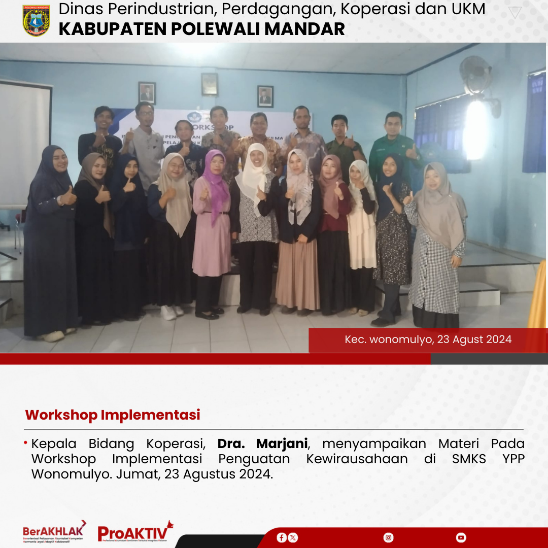 Kepala Bidang Koperasi, Dra. Marjani, menyampaikan Materi Pada Workshop Implementasi Penguatan Kewirausahaan di SMKS YPP Wonomulyo. Jumat, 23 Agustus 2024....