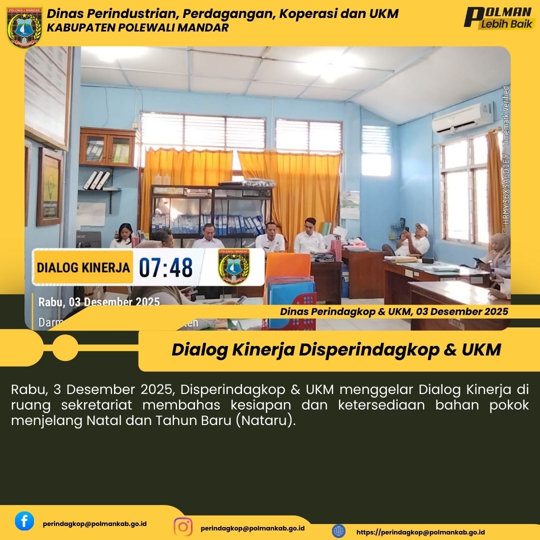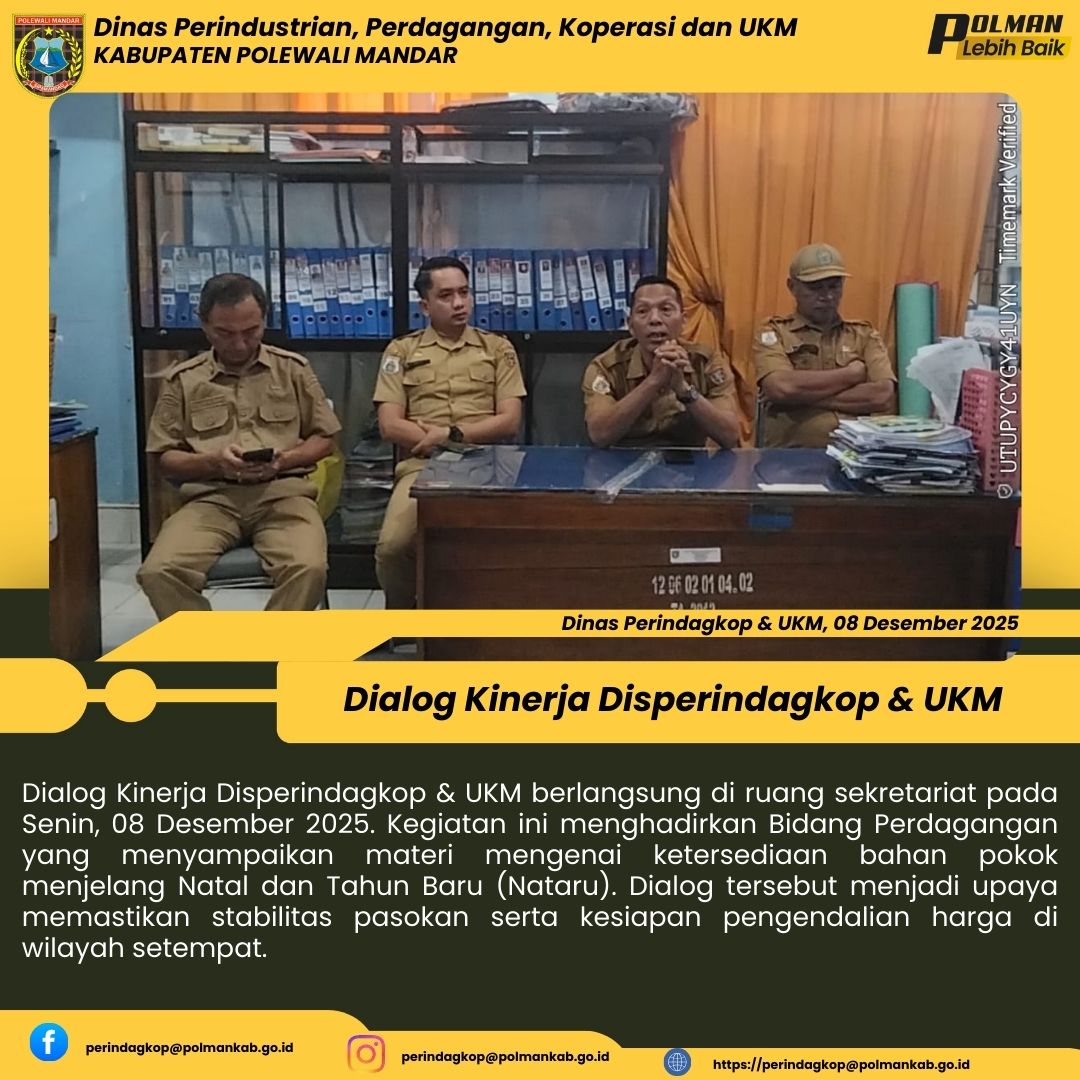 Rabu, 3 Desember 2025, Disperindagkop & UKM menggelar Dialog Kinerja di ruang sekretariat membahas kesiapan dan ketersediaan bahan pokok menjelang Natal dan Tahun Baru (Nataru)....