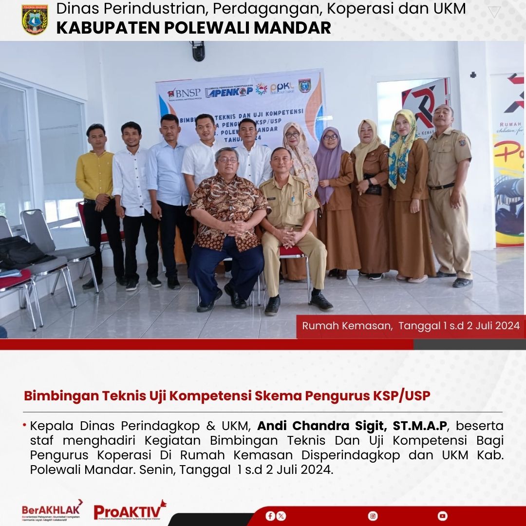 Kepala Dinas Perindagkop & UKM, Andi Chandra Sigit, ST.M.A.P, beserta staf menghadiri Kegiatan Bimbingan Teknis Dan Uji Kompetensi Bagi Pengurus Koperasi Di Rumah Kemasan Disperindagkop dan UKM Kab. Polewali Mandar. Senin, Tanggal 1 s.d 2 Juli 2024....