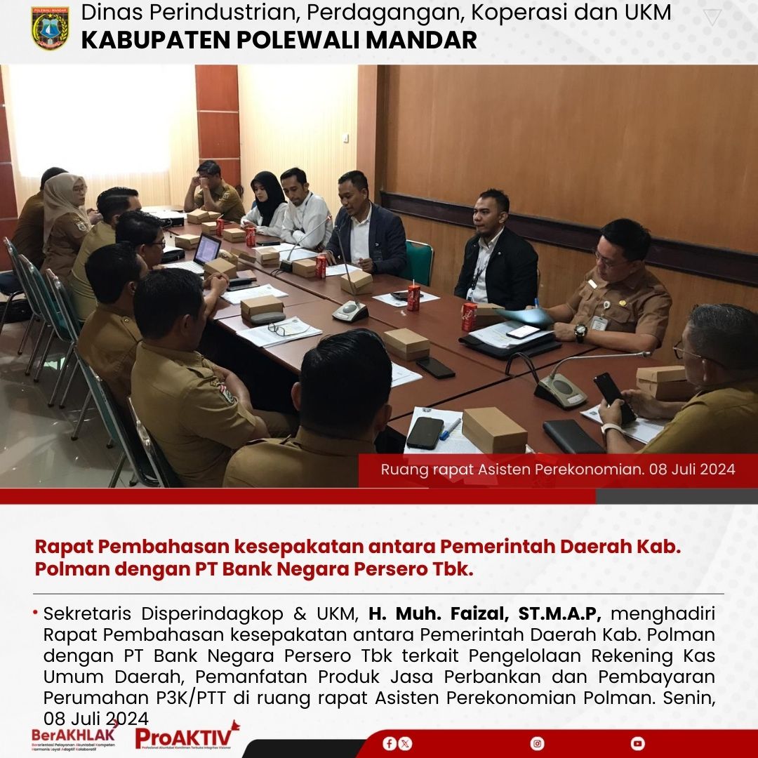 Rapat Pembahasan kesepakatan antara Pemerintah Daerah Kab. Polman dengan PT Bank Negara Persero Tbk. 08 Juli 2024...