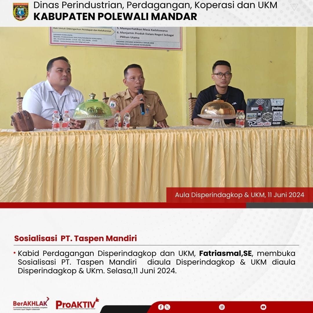 Kabid Perdagangan Disperindagkop dan UKM, Fatriasmal,SE, membuka Sosialisasi PT. Taspen Mandiri diaula Disperindagkop & UKM diaula Disperindagkop & UKm. Selasa,11 Juni 2024....