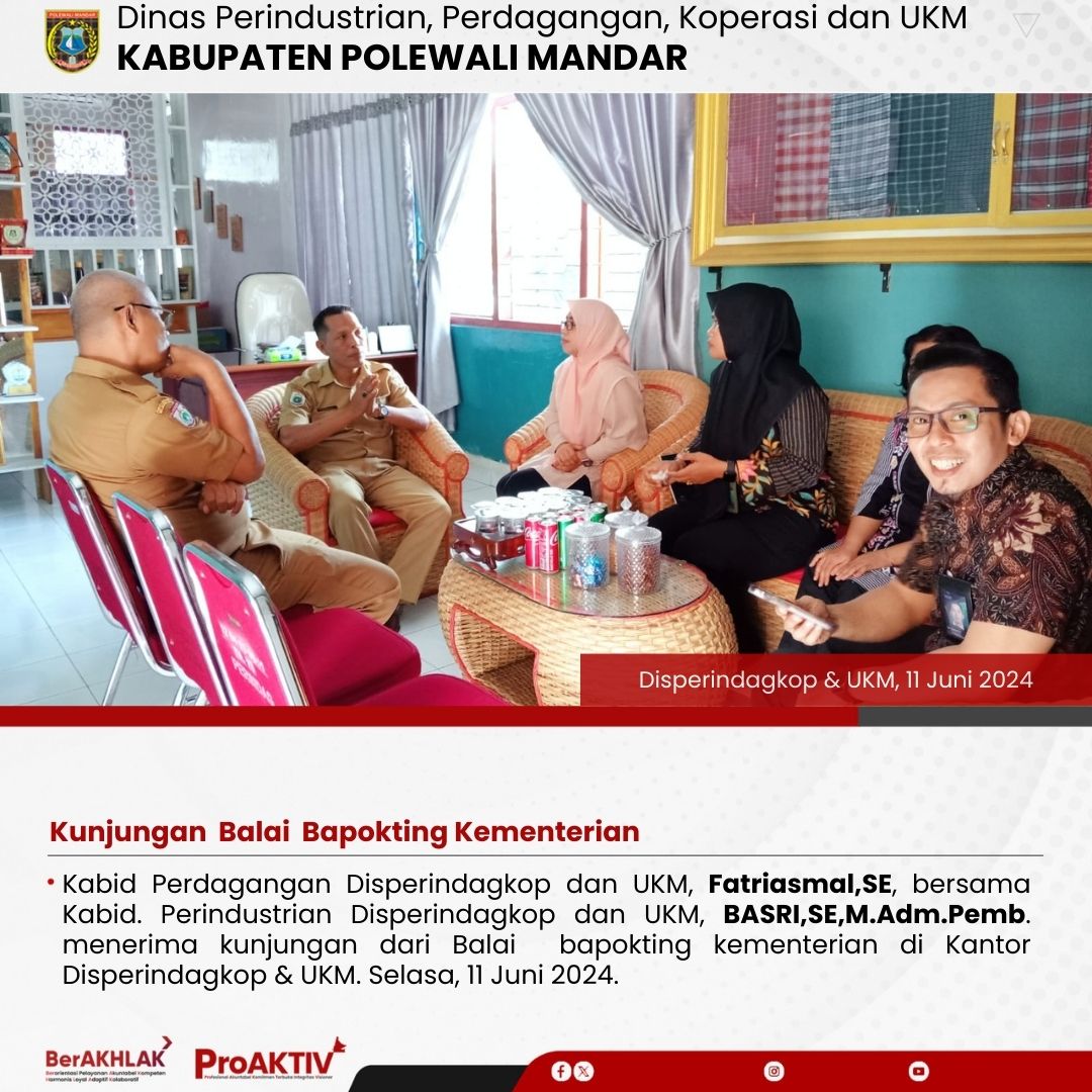 Kabid Perdagangan Disperindagkop dan UKM, Fatriasmal,SE, bersama Kabid. Perindustrian Disperindagkop dan UKM, BASRI,SE,M.Adm.Pemb. menerima kunjungan dari Balai bapokting kementerian di Kantor Disperindagkop & UKM. Selasa, 11 Juni 2024....