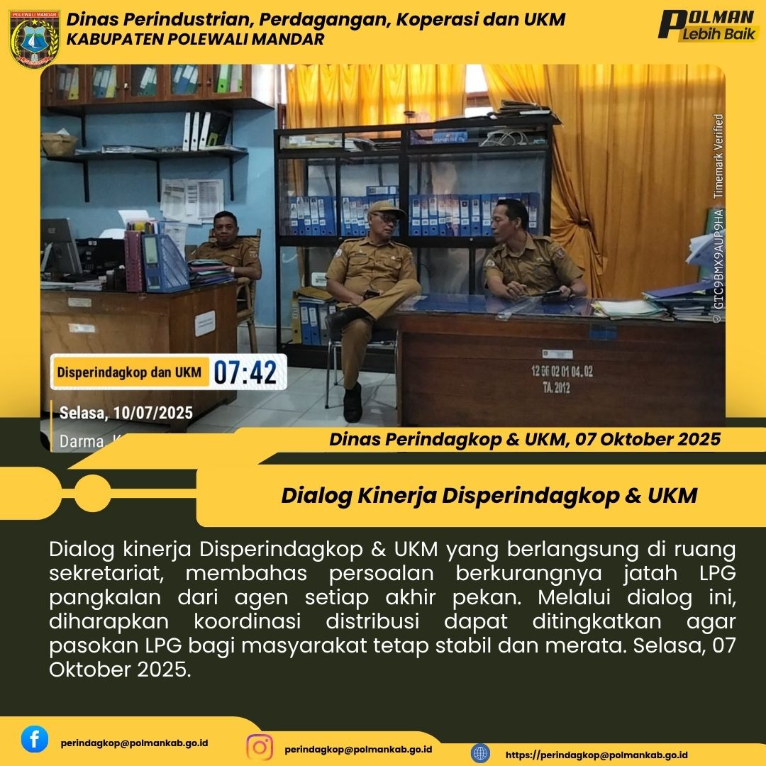Dialog kinerja Disperindagkop & UKM yang berlangsung di ruang sekretariat, membahas persoalan berkurangnya jatah LPG pangkalan dari agen setiap akhir pekan. Melalui dialog ini, diharapkan koordinasi distribusi dapat ditingkatkan agar pasokan LPG bagi masyarakat tetap stabil dan merata. Selasa, 07 Oktober 2025....