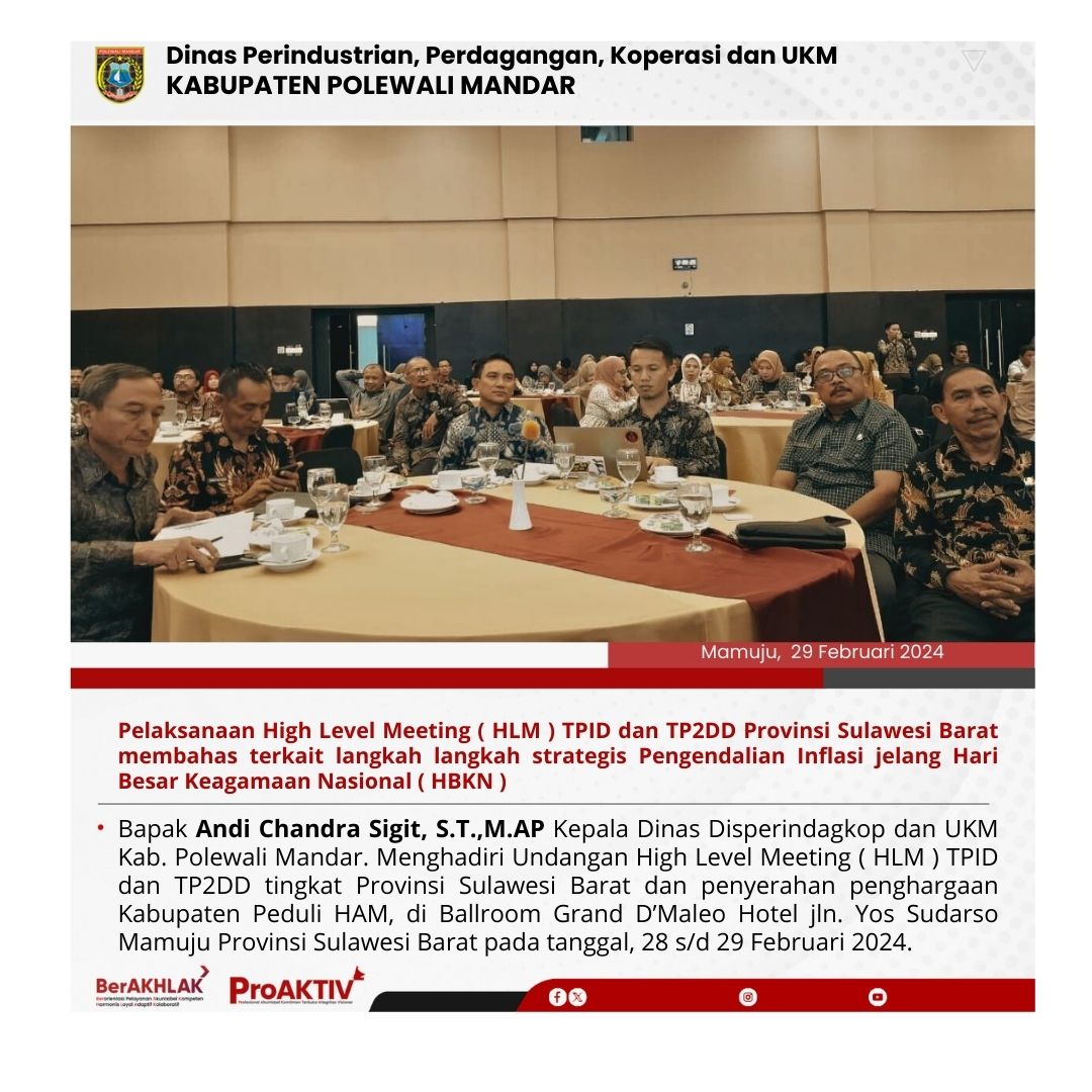 Undangan High Level Meeting ( HLM ) TPID dan TP2DD Tingkat Provinsi Sulawesi Barat dan Penyerahan Penghargaan Kabupaten Peduli HAM...