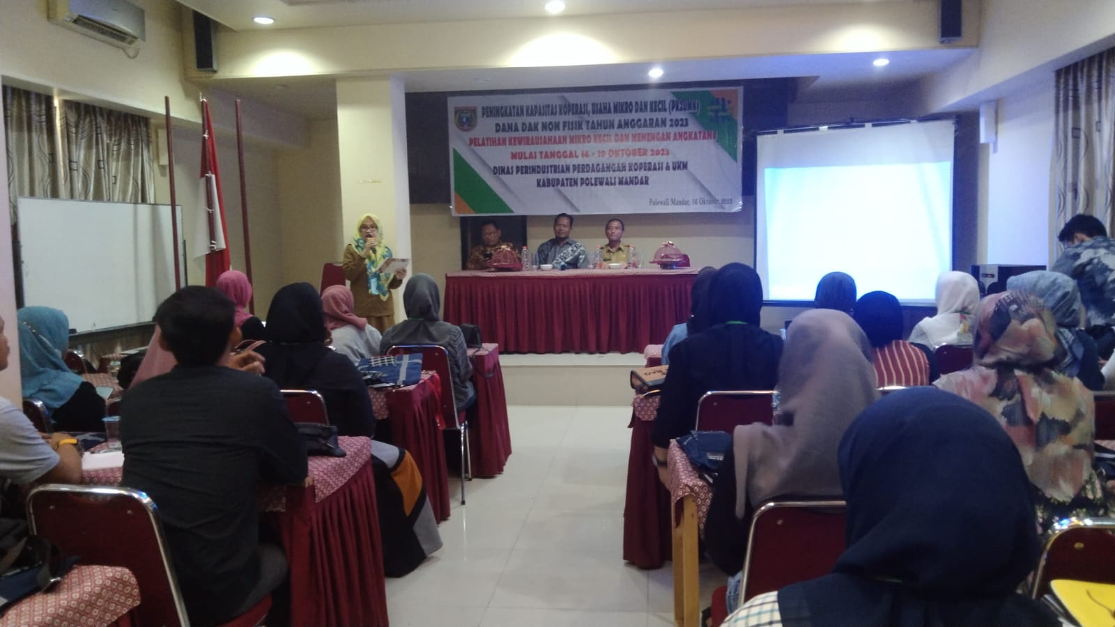Senin 16 Oktober 2023, Pembukaan Pelatihan Kewirausahaan Mikro Kecil dan Menengah Angkatan I, yang di adakan oleh Bidang Koperasi Disperindagkop Ukm Polewali Mandar di Aula Hotel Al-Ikhlas Polewali Mandar....