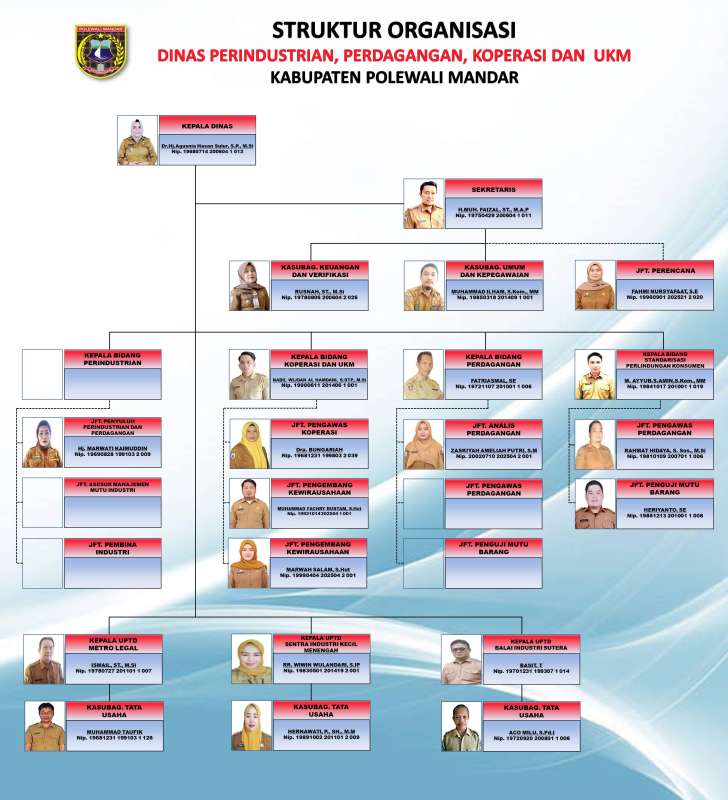 Sesuai Peraturan Bupati (PERBUP) Kabupaten Polewali Mandar Nomor 53 Tahun 2021 tentang KEDUDUKAN, SUSUNAN ORGANISASI, TUGAS DAN FUNGSI SERTA TATA KERJA PERANGKAT DAERAH klik disini