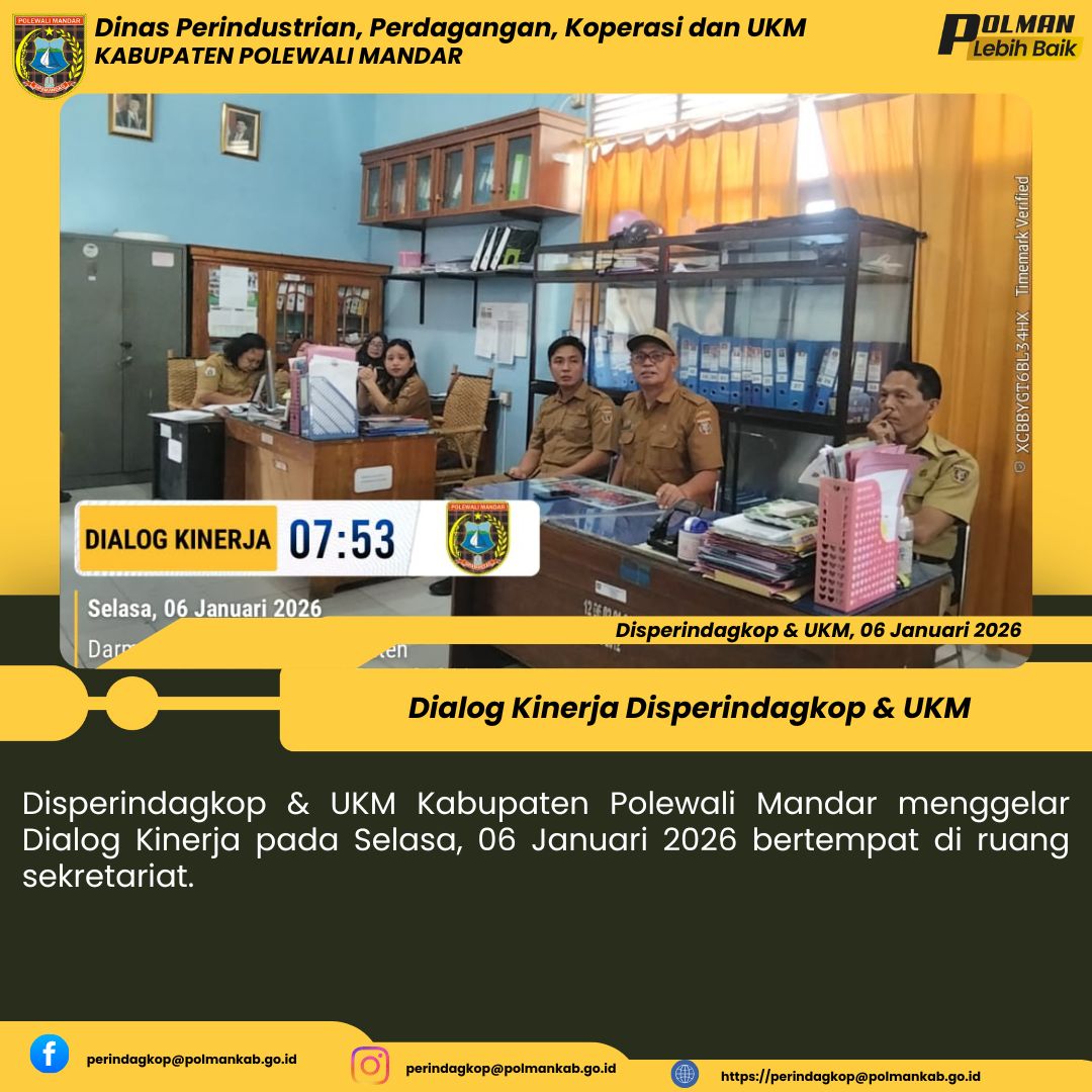 Disperindagkop & UKM Kabupaten Polewali Mandar menggelar Dialog Kinerja pada Selasa, 06 Januari 2026 bertempat di ruang sekretariat....