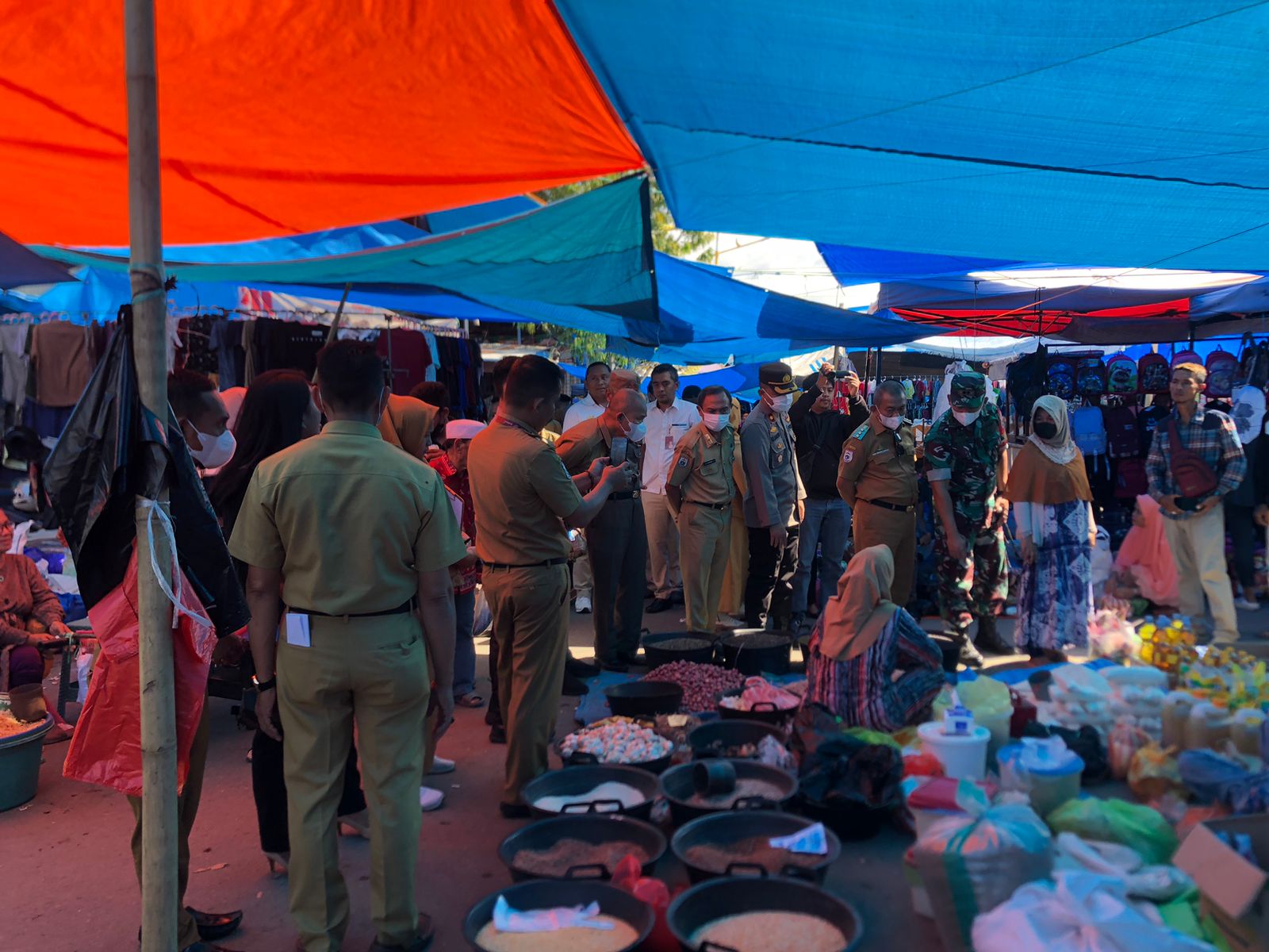 PEMANTAUAN HARGA BAHAN POKOK DI PASAR SENTRAL BERSAMA BAPAK BUPATI POLEWALI MANDAR, DAMDIN, POLRES, BULOG, DAN DINAS TERKAIT LAINNYA