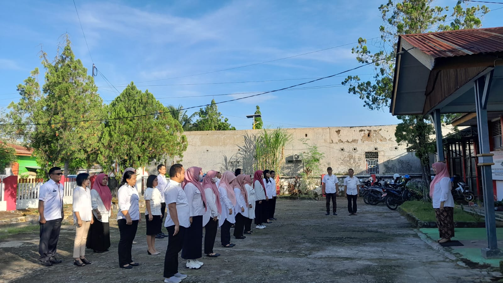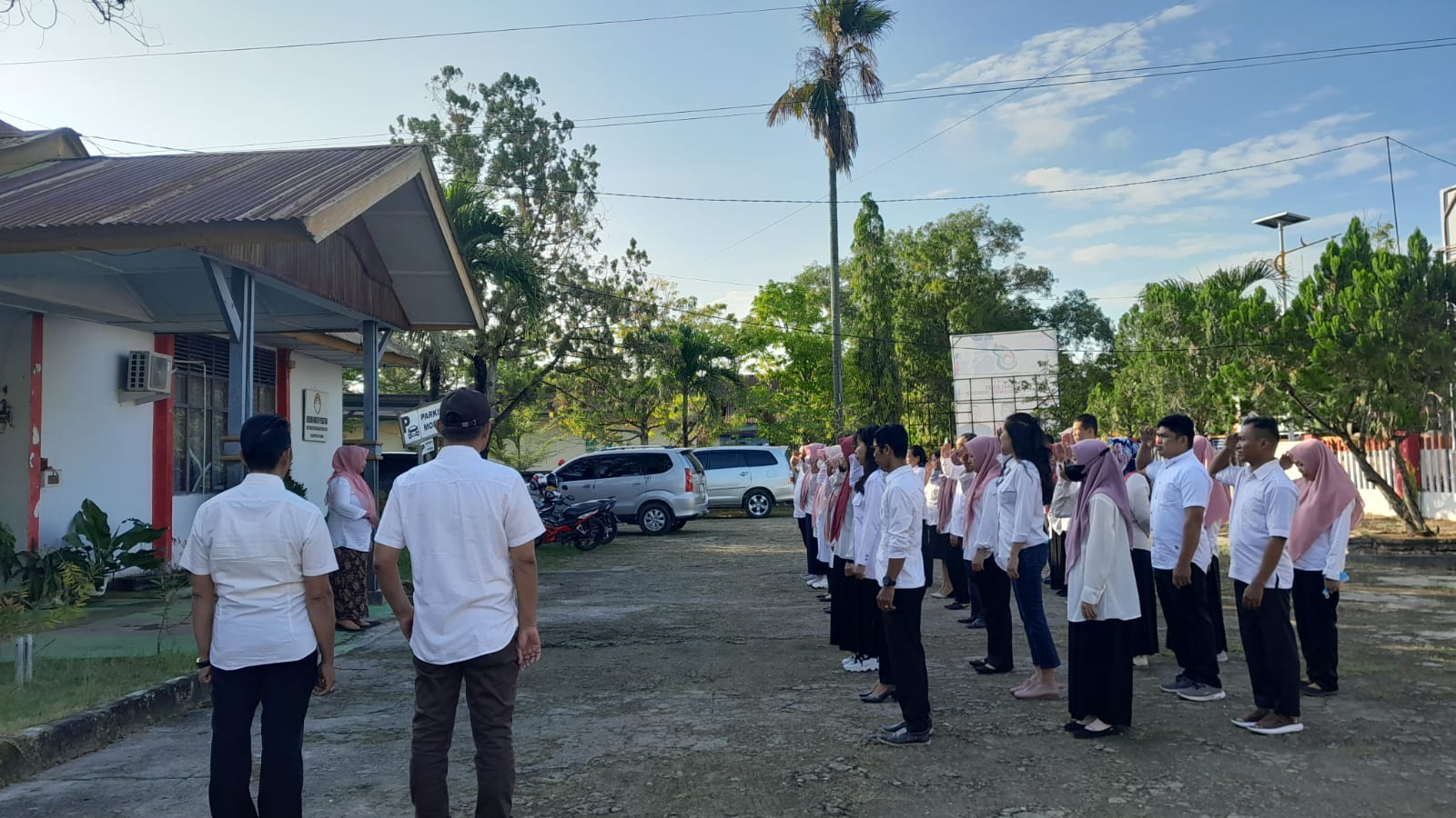 Pelaksanaan apel pagi di halaman kantor Disperindagkop Ukm Polewali Mandar, Rabu, 31 Mei 2023.
