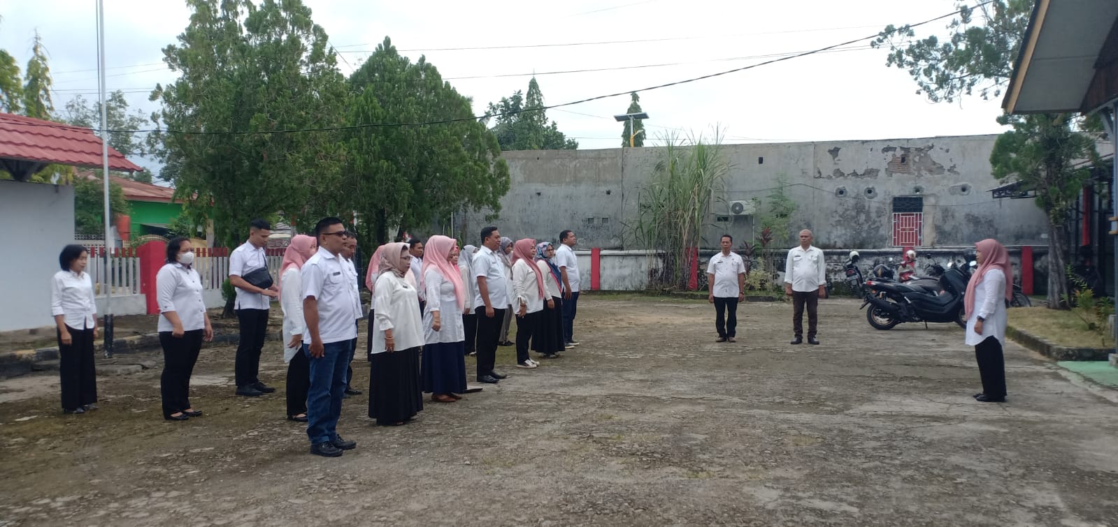 Melaksanakan Apel Pagi di halaman kantor Disperindagkop