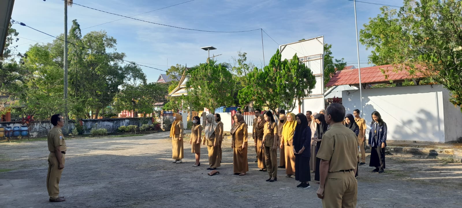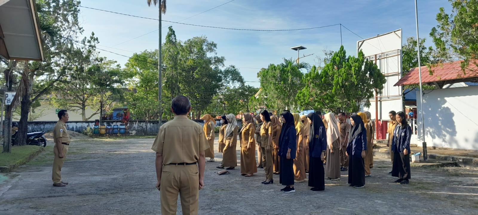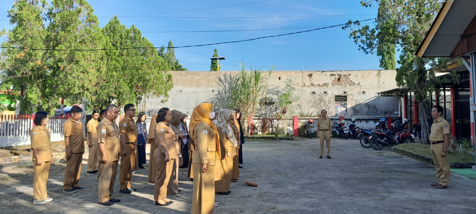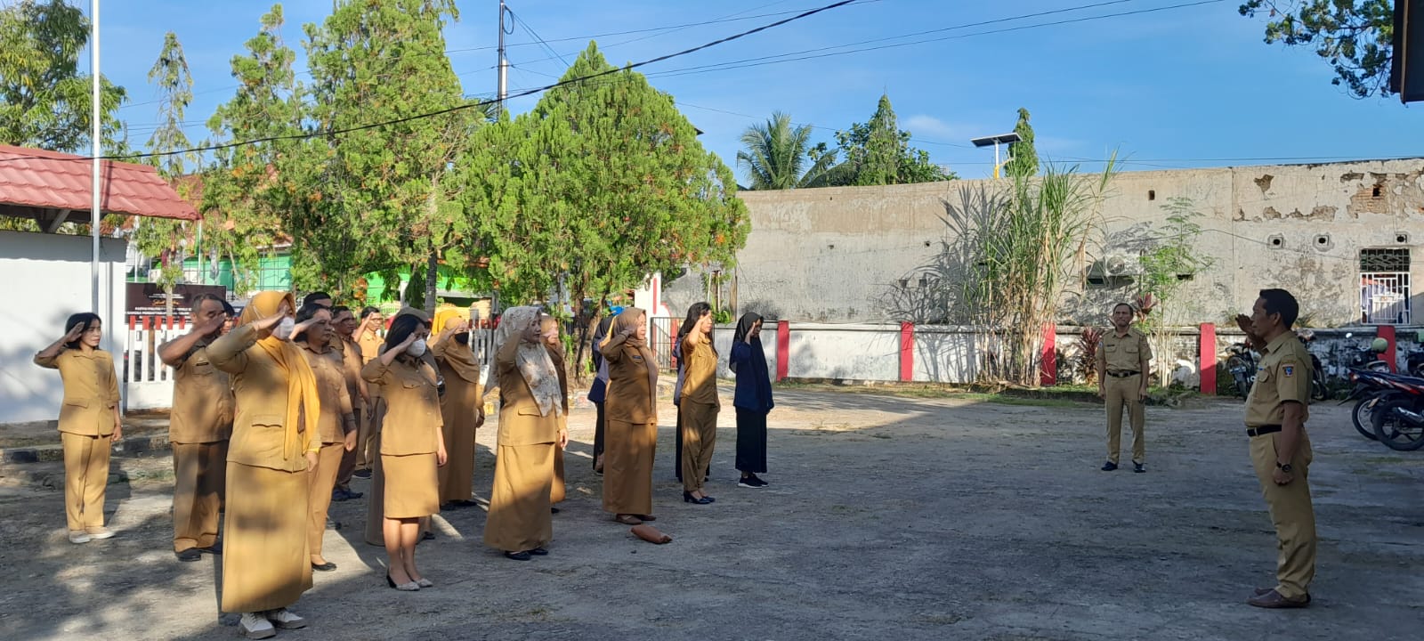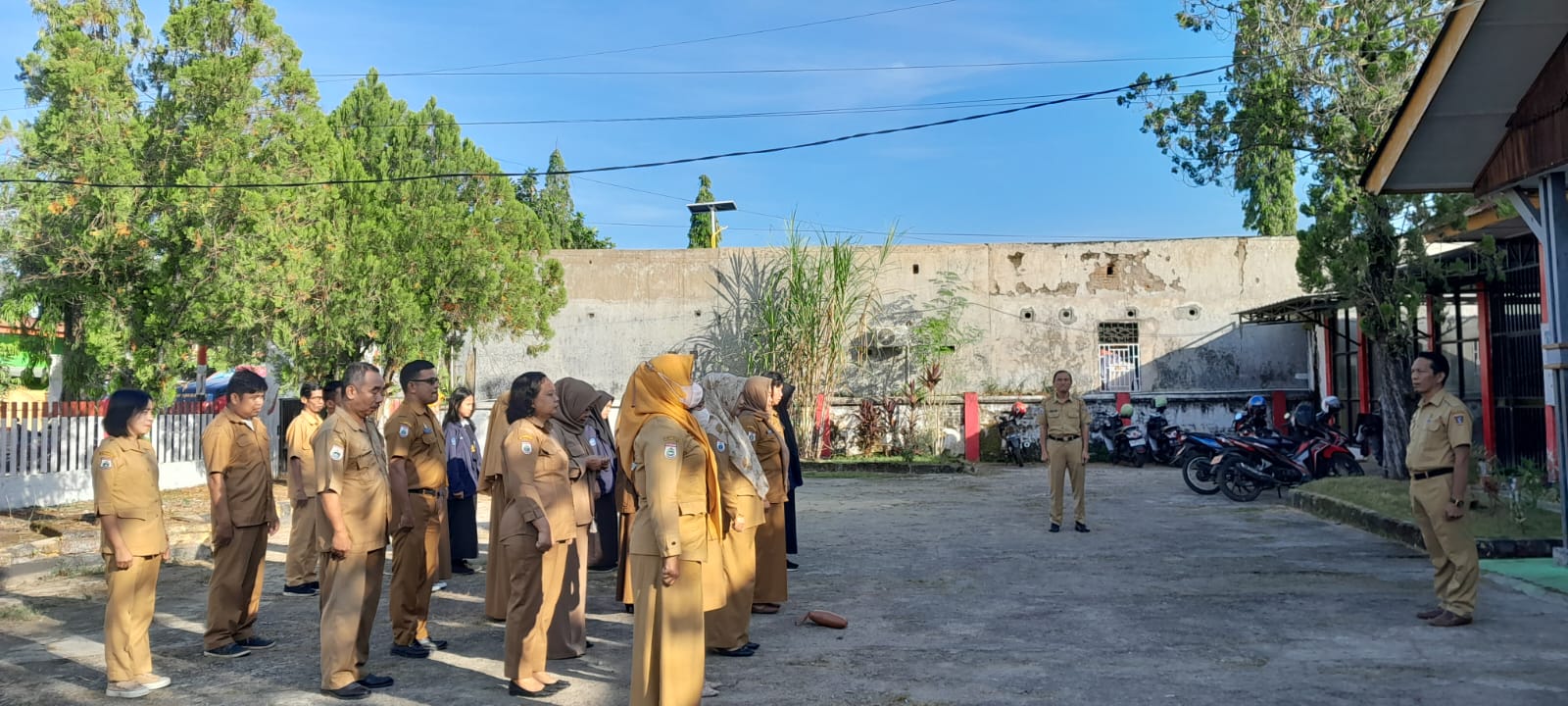 Melaksanakan Apel Pagi di halaman kantor Disperindagkop Ukm