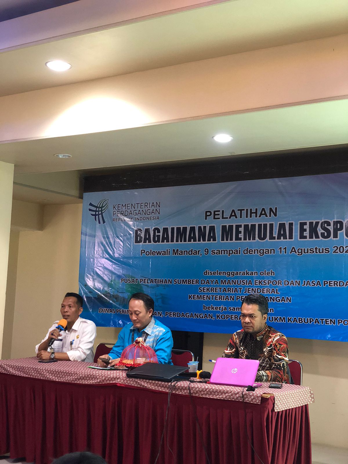 Rabu, 09 Agustus 2023 2023, Pembukaan Acara Kegiatan Pelatihan Ekspor 2023, Pusat Pelatihan Sumber Daya Manusia Ekspor dan Jasa Perdagangan (PPEJP) Kementerian Perdagangan Bekerja Sama dengan Disperindagkop Ukm Polewali Mandar, Pelatihan Ekspor 2023, Bagaimana Memulai Ekspor bagi pelaku usaha dan/atau UKM potensial ekspor di Polewali Mandar, Yang bertempat di Hotel Lilianto Jl. Ahmad Yani No. 54 Polewali.