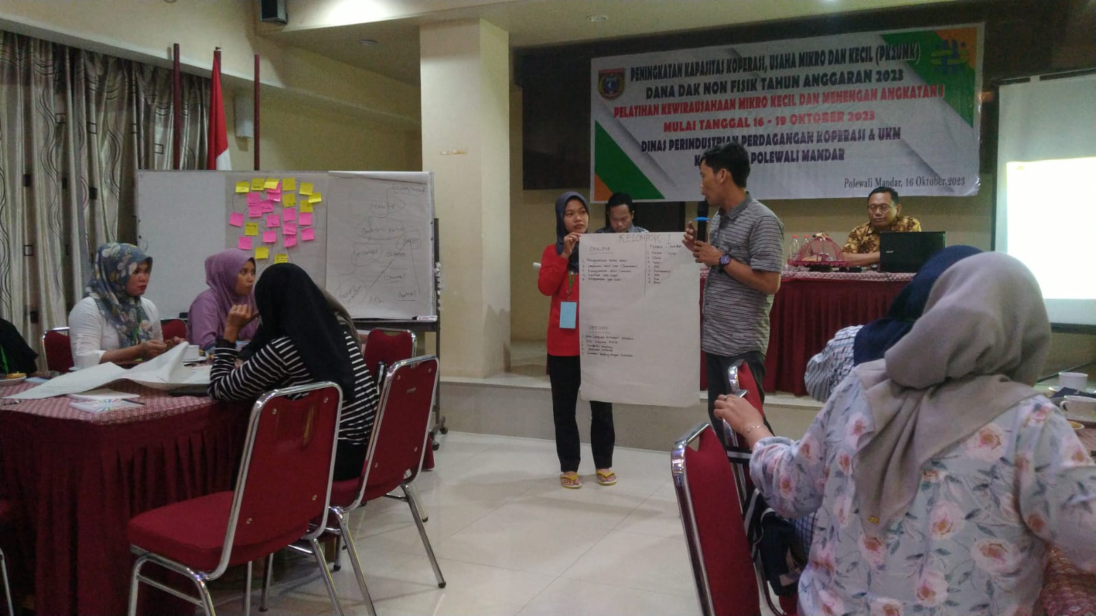 Hari ke-3 Pelatihan Kewirausahaan Mikro Kecil dan Menengah Angkatan I, Rabu 18 Oktober 2023, yang bertempat di Hotel Lilianto Polewali Mandar.