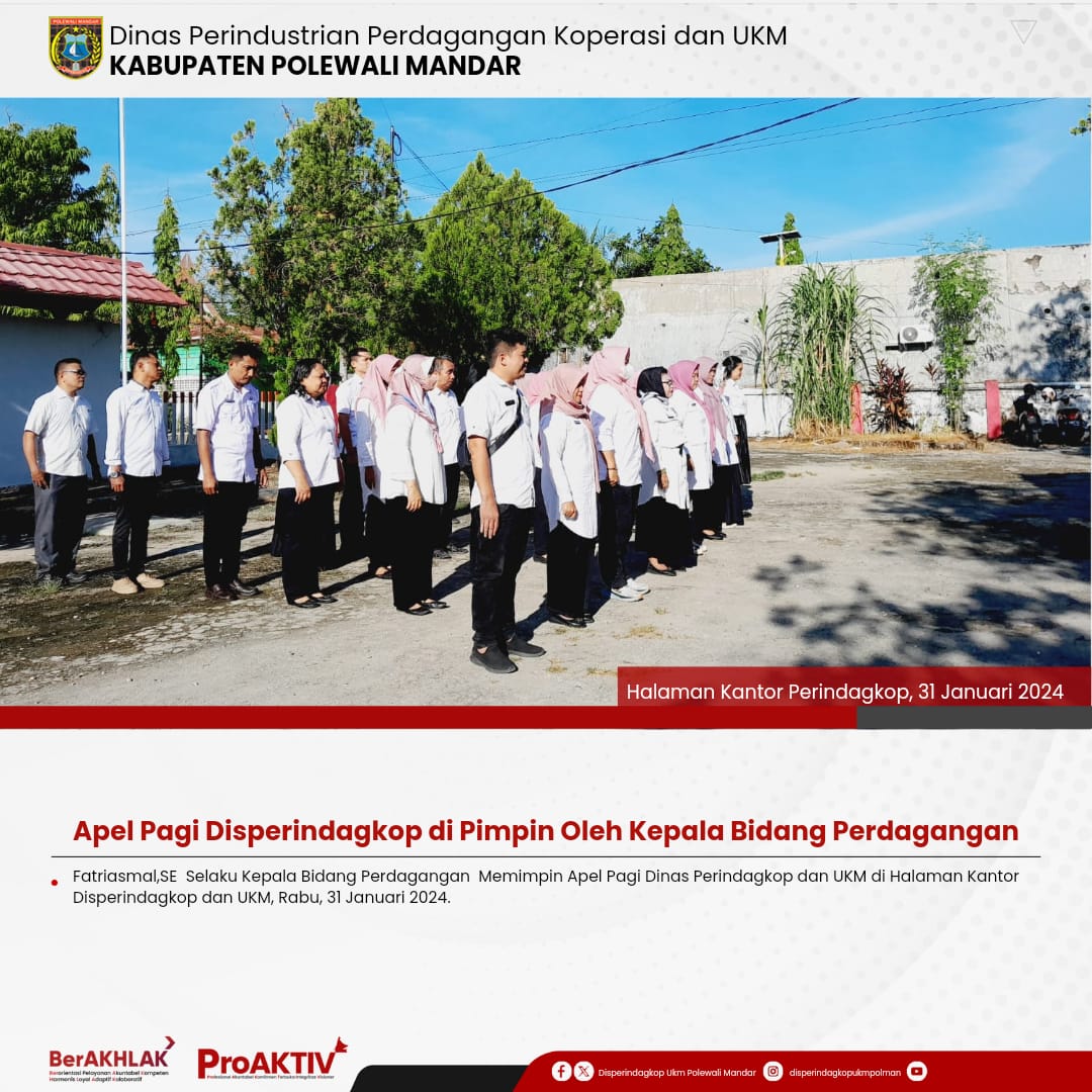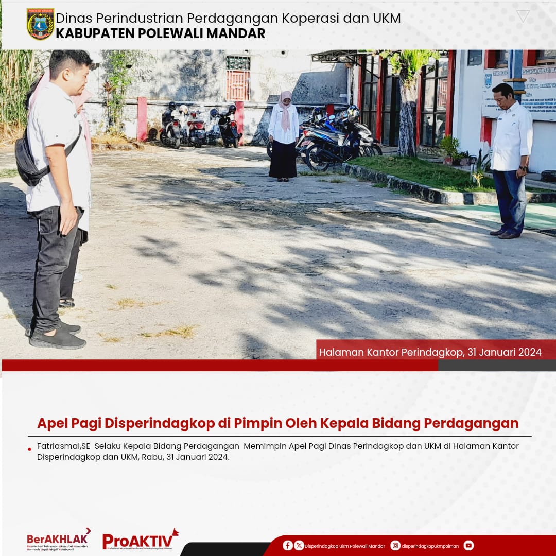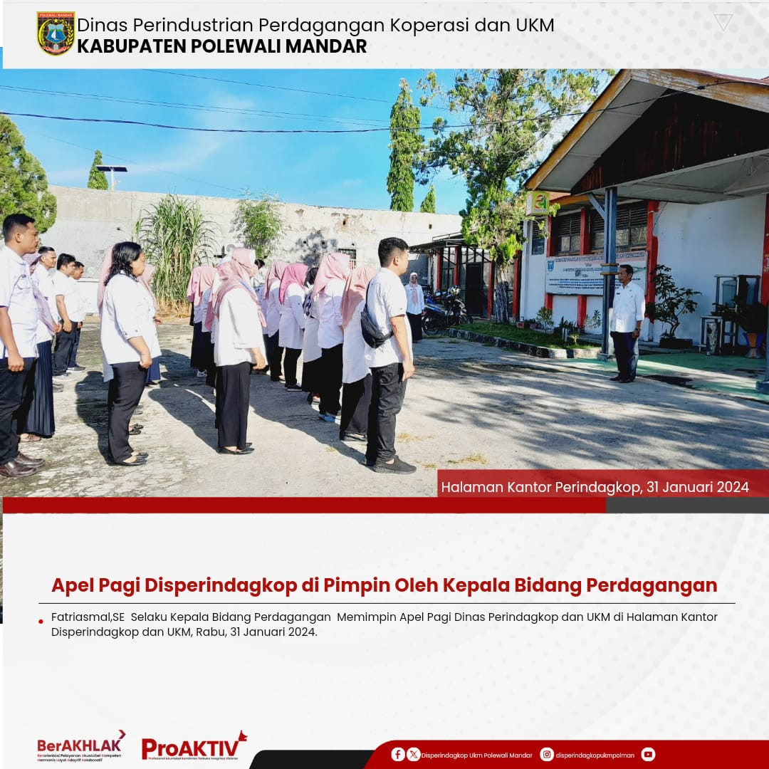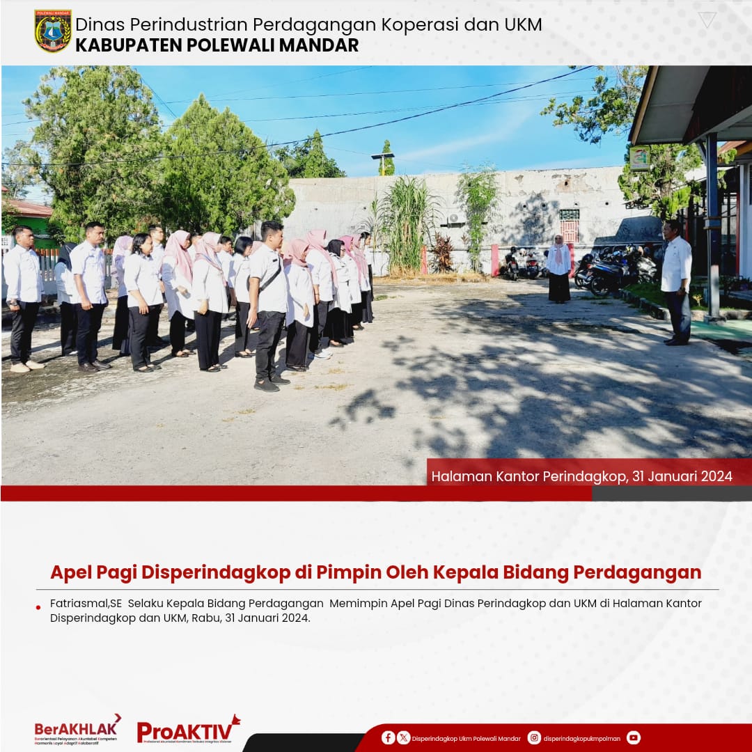 Fatriasmal,SE Selalu Kepala Bidang Perdagangan Memimpin Apel Pagi Dinas Perindagkop dan UKM di Halaman Kantor Disperindagkop dan UKM, Rabu, 31Januari 2024.